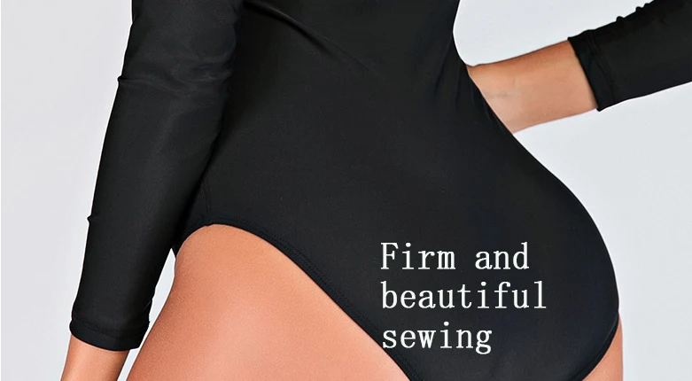 Sbart Long Sleeve One Piece Swimsuit Women Black Color Plus Size Bathing Suit Triangle Monokinis Cholrine Resistant Swimwear