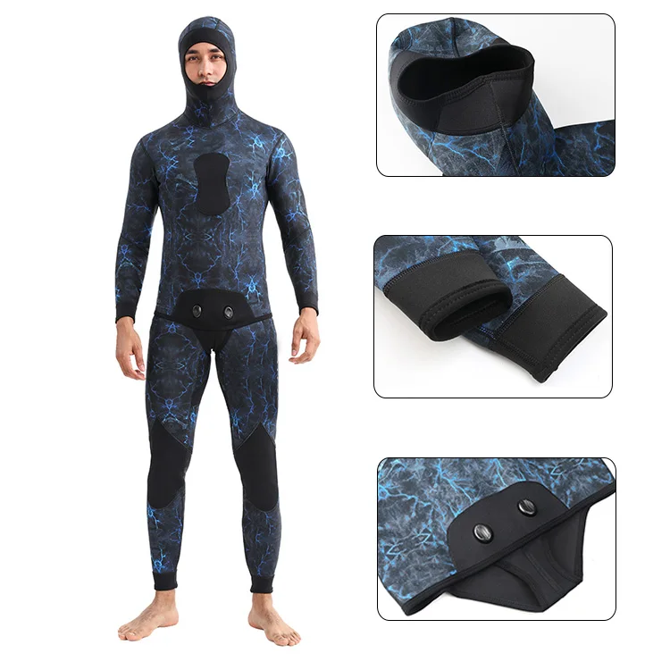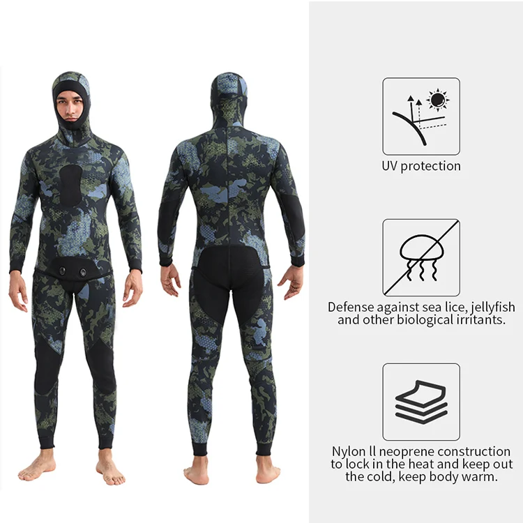 3mm Neoprene Two-Piece Wetsuit for Spearfishing Freediving Surfing Thermal Diving Suit for Men Custom Logo Available