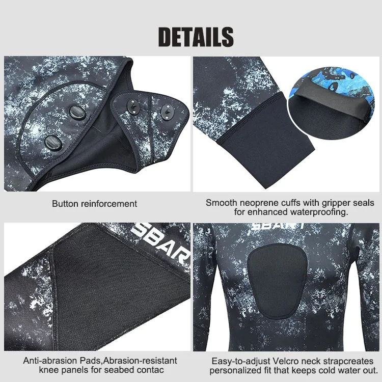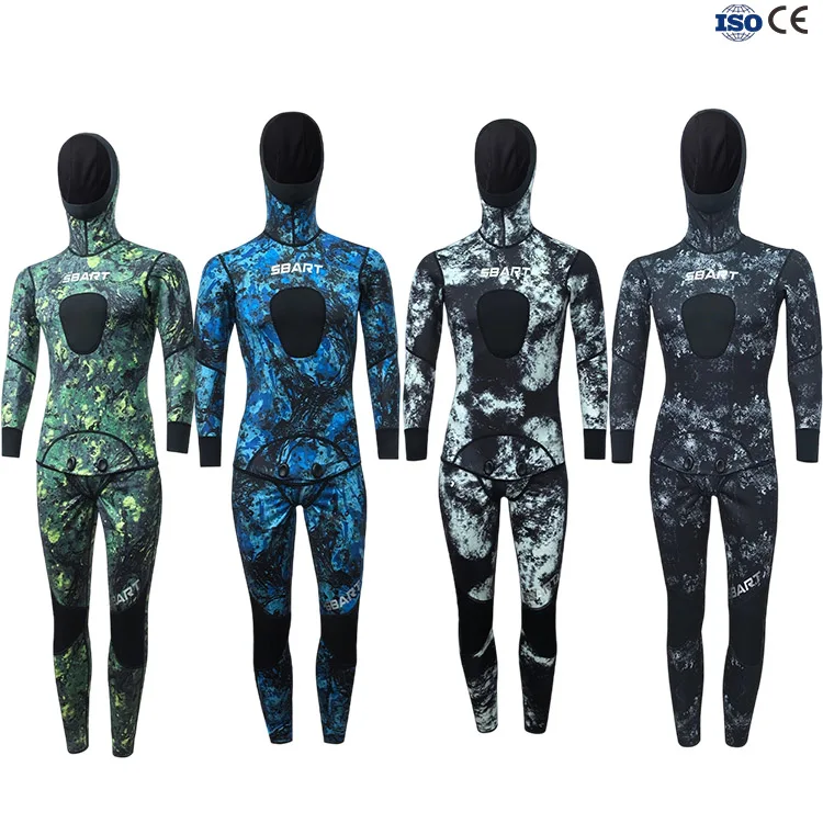 Mens 5mm Neoprene Warm Diving Suit slip Tip Close Cell Diving Camouflage Two-Piece Spearfishing Wetsuit