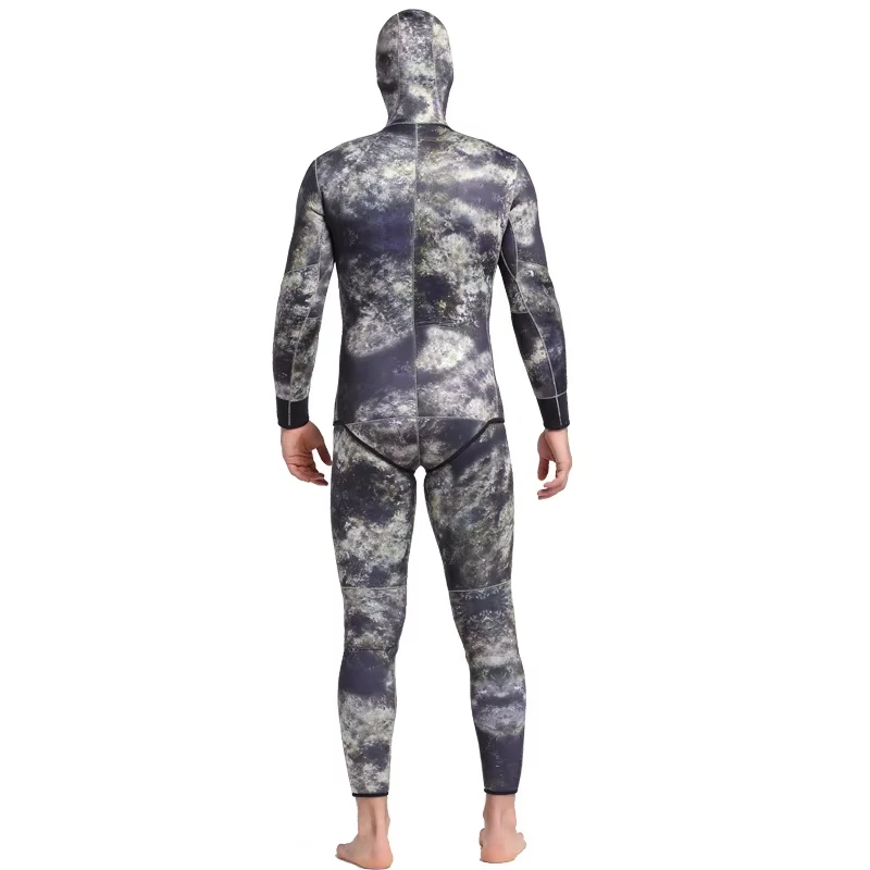 SBART 3mm Camouflage Neoprene Wetsuit 2-Piece Set Long Sleeve Hooded Diving Suit for Adults Spearfishing Freediving Surfing