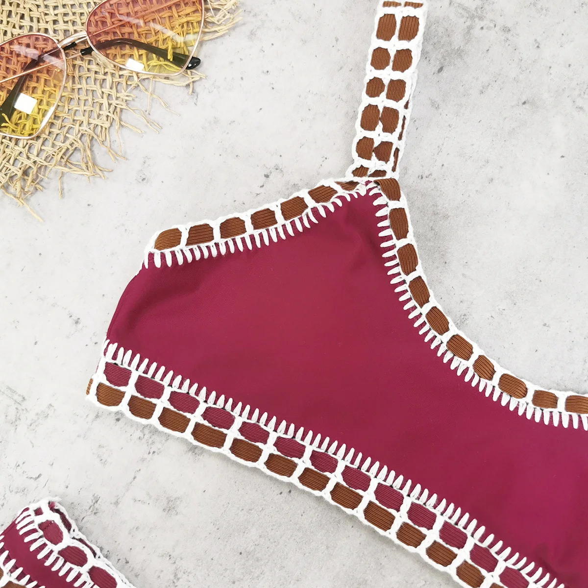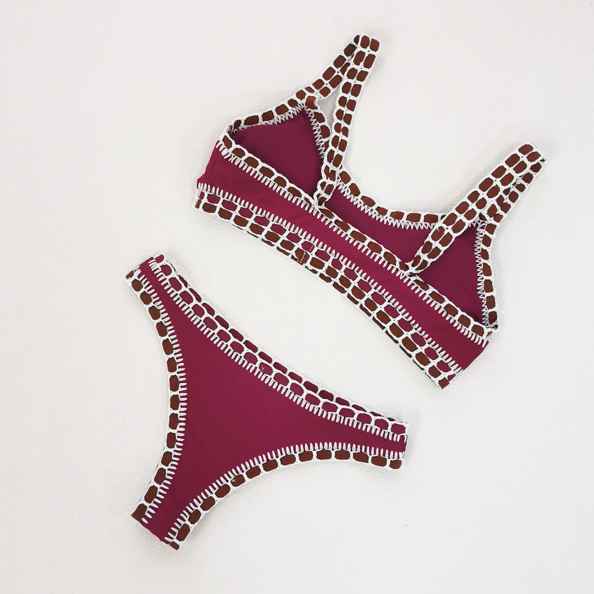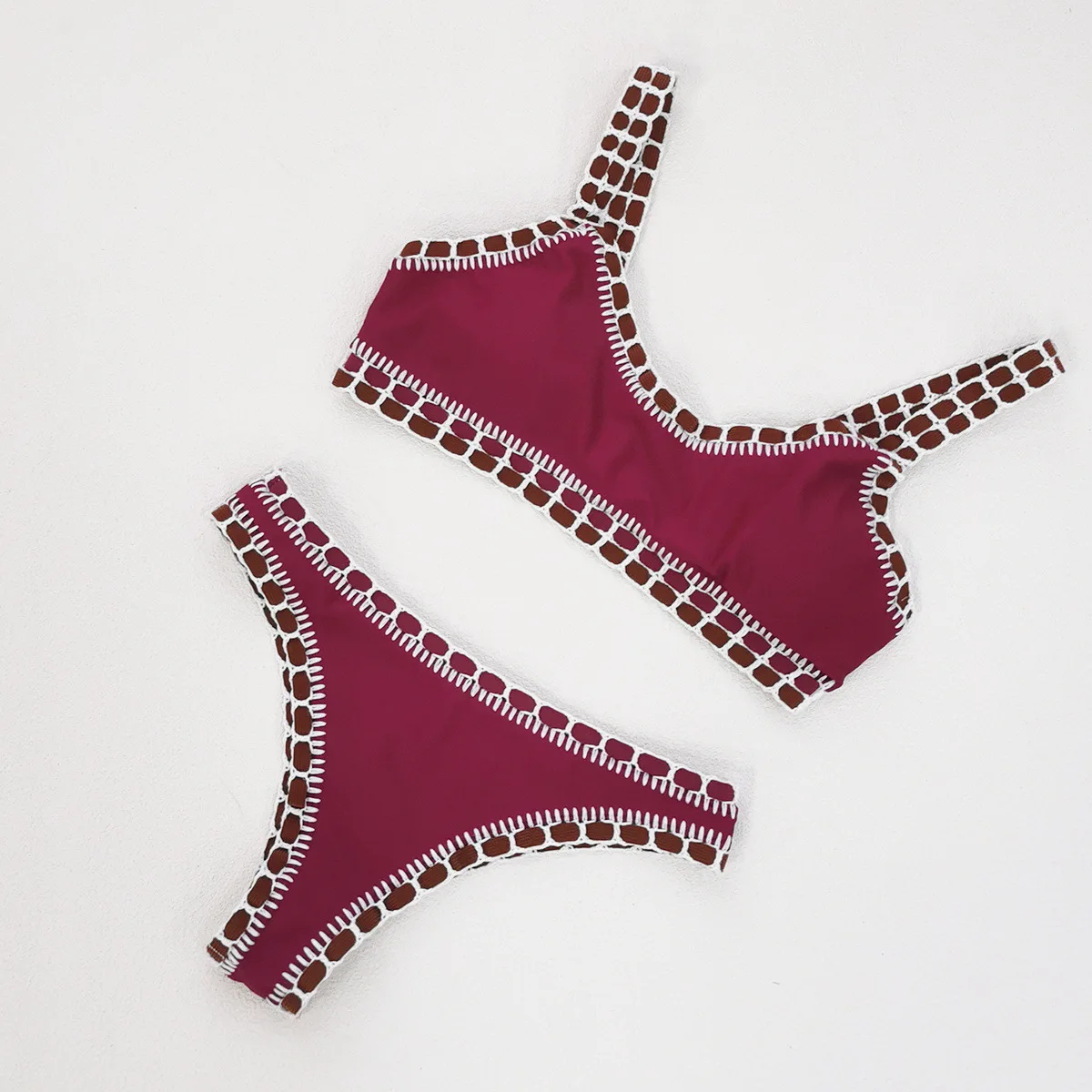 STOCK Crochet Boarder Women Swimwear Cheeky Bikini Two Pieces Swimsuit S-L
