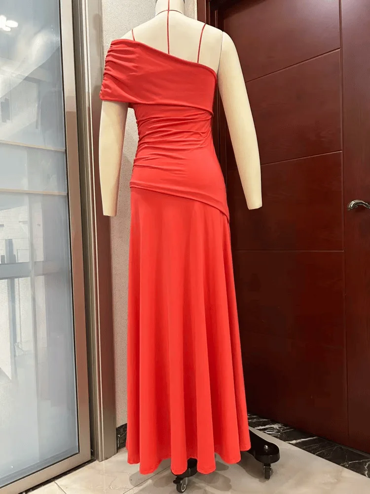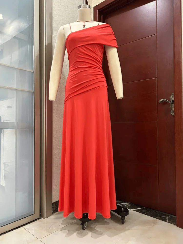 STOCK Two Colors One Shoulder Women Dress Slim Fit Maxi Dress Beach Robe S-XL