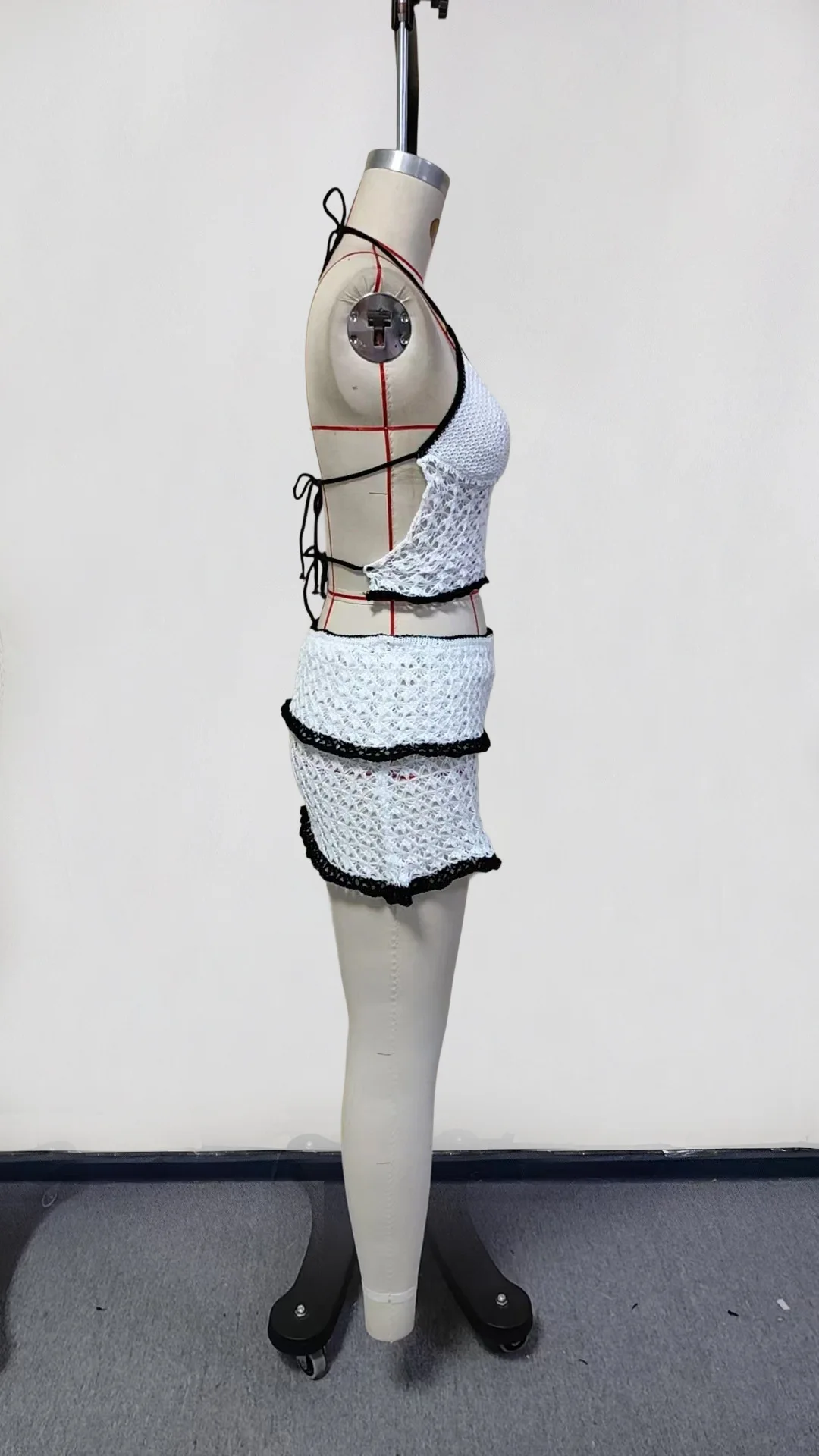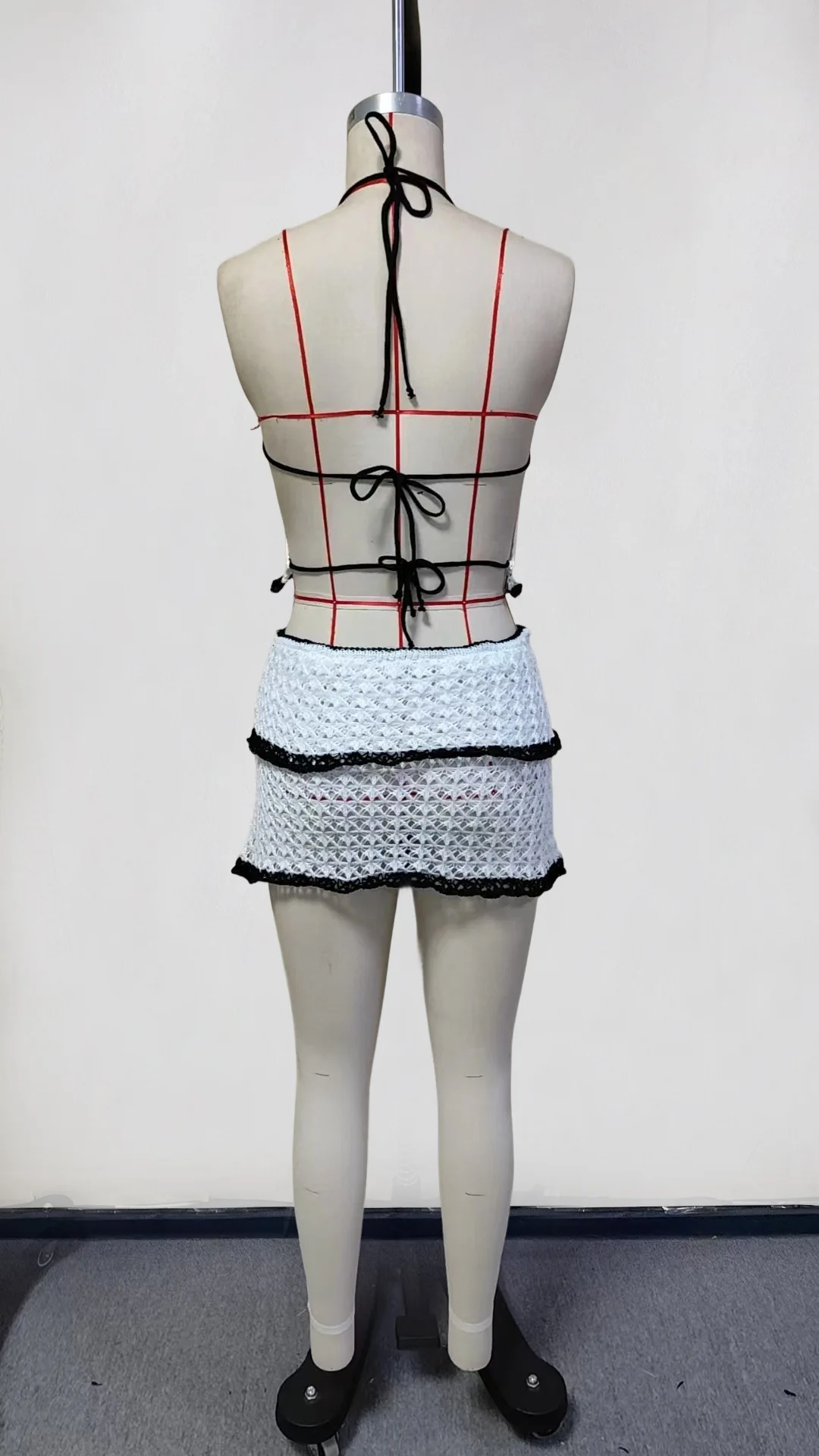 STOCK Knitted Women's Two Pieces Set Crochet Beachwear V-NECK Tank Top and Mini Skirt Set Cover Ups S-L