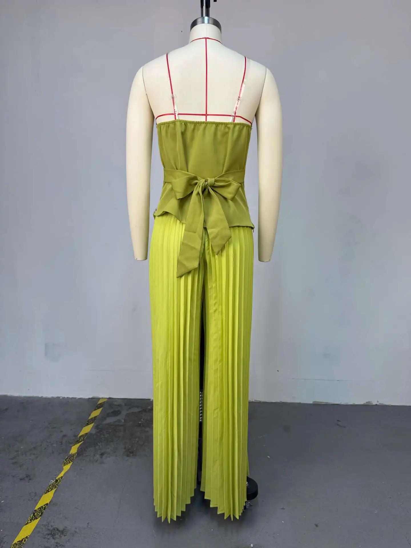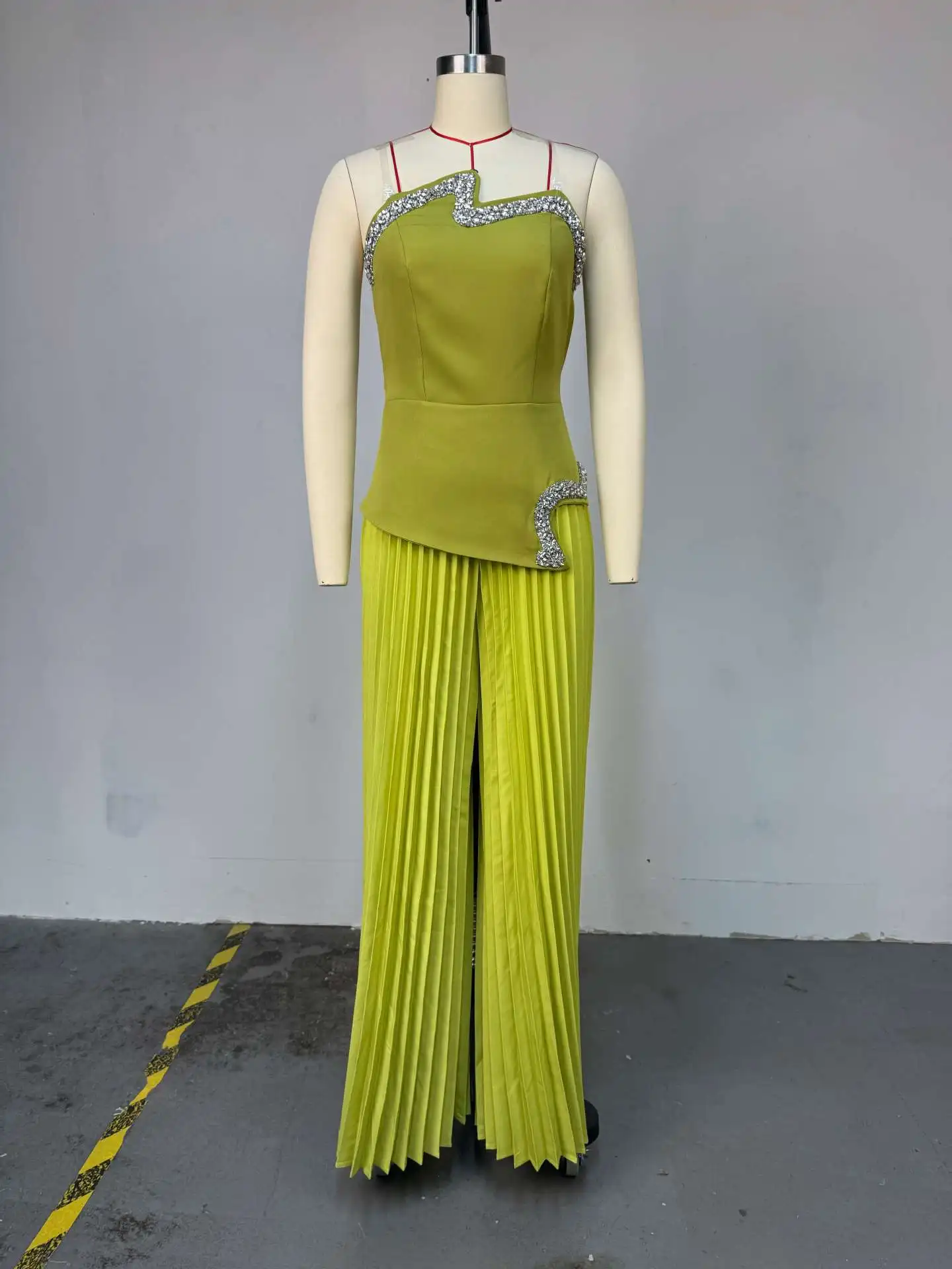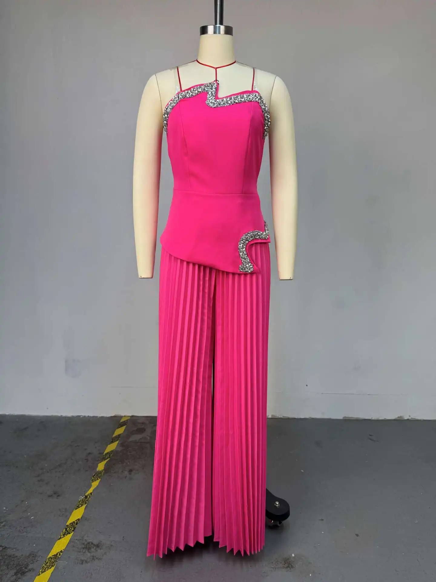 STOCK Two Colors Women's Two Pieces Set Rhinestone Tube Top and Pleated Wide Top Pant Set Plus Size Clothing S-2XL