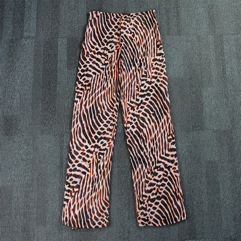 STOCK Animal Print Women 3Pieces Swimwear Triangle Top Brazilian Bikini and Long Pant Set Beach Cover Ups S-L