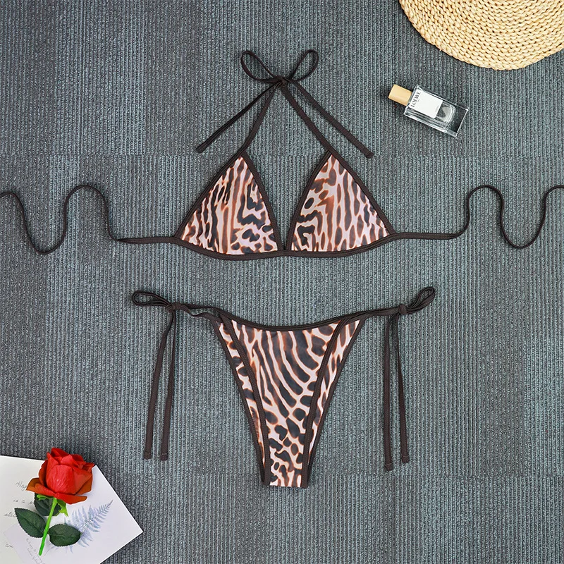 MLY Ruffle Bikini Summer Two Piece Suit Sexy Swimwear Bandage Biquini Triangle Swimsuit Printed Bathsuit