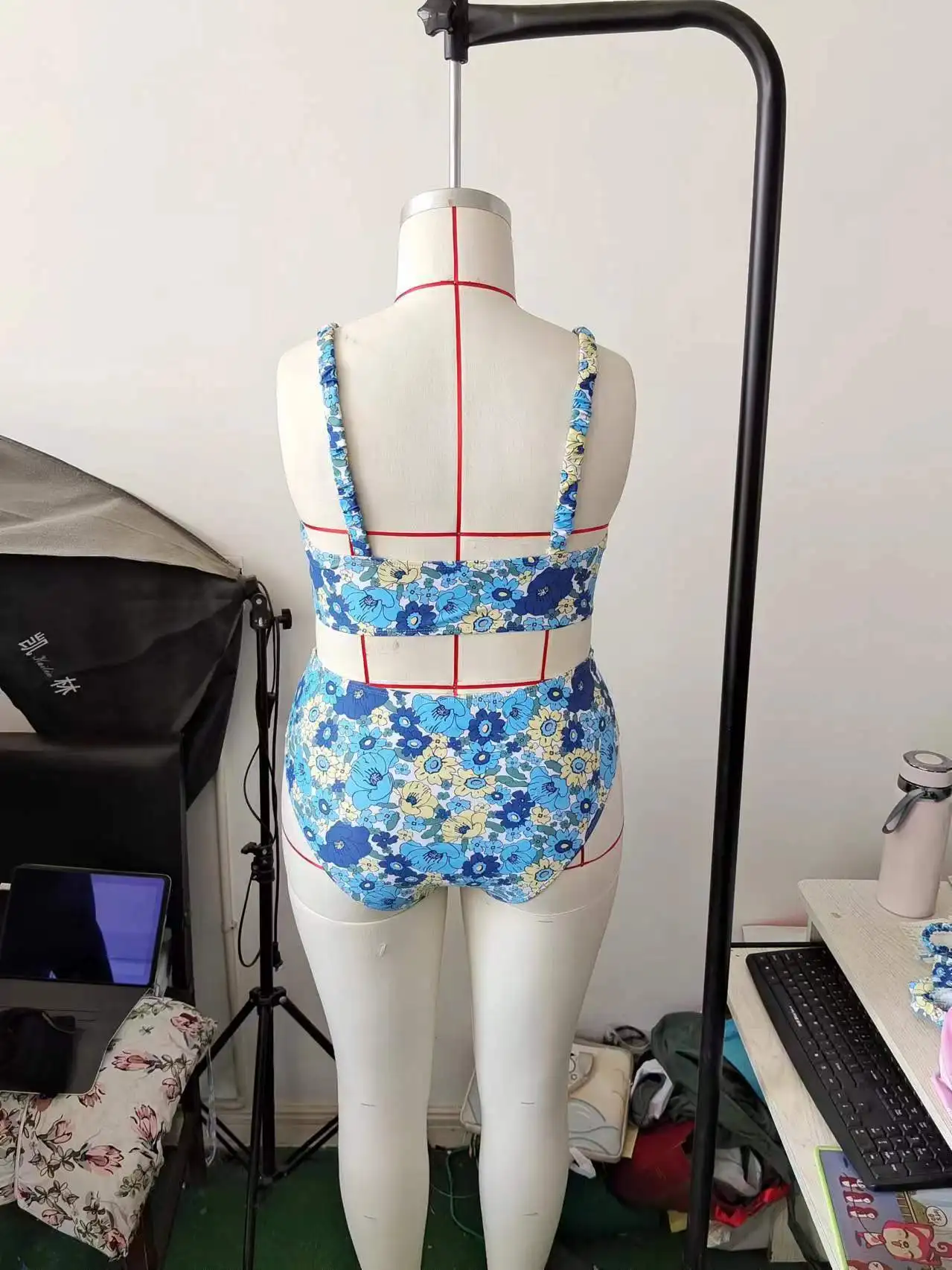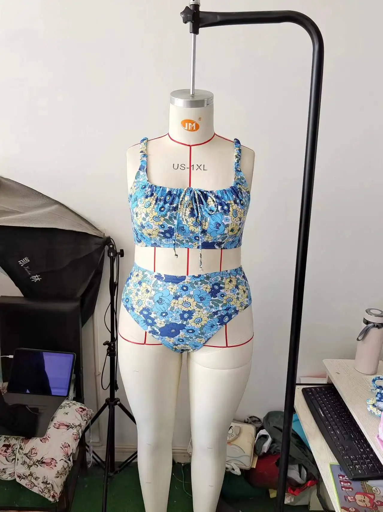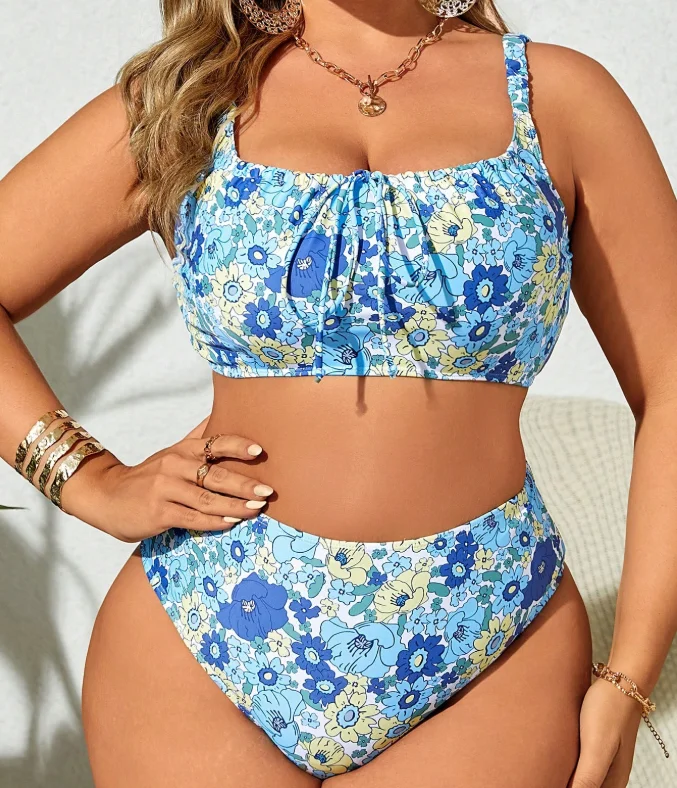 NEW STOCK Print Women Two Pieces Swimwear Bandeau Top Middle Waist Plus Size Bikini L-4XL