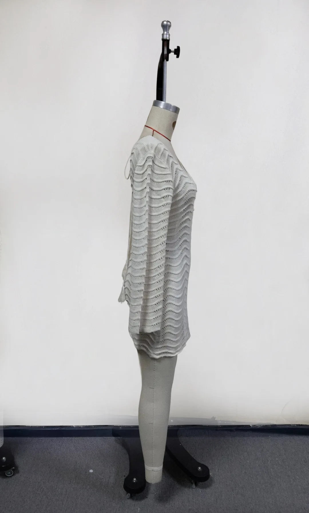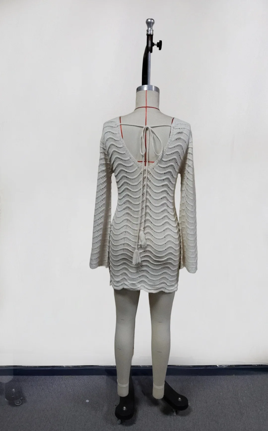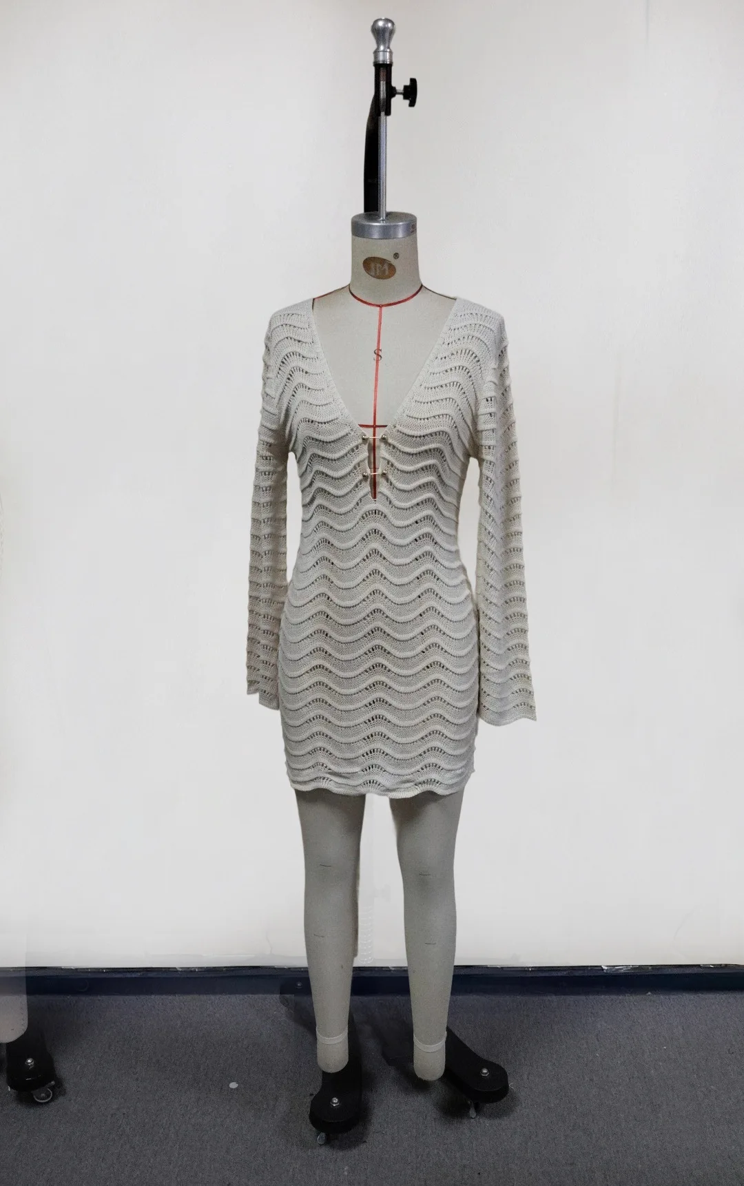 NEW STOCK Knitted Women Dress Crochet Mini Beach Dress Long Sleeve Swimwear CoverUp S-L