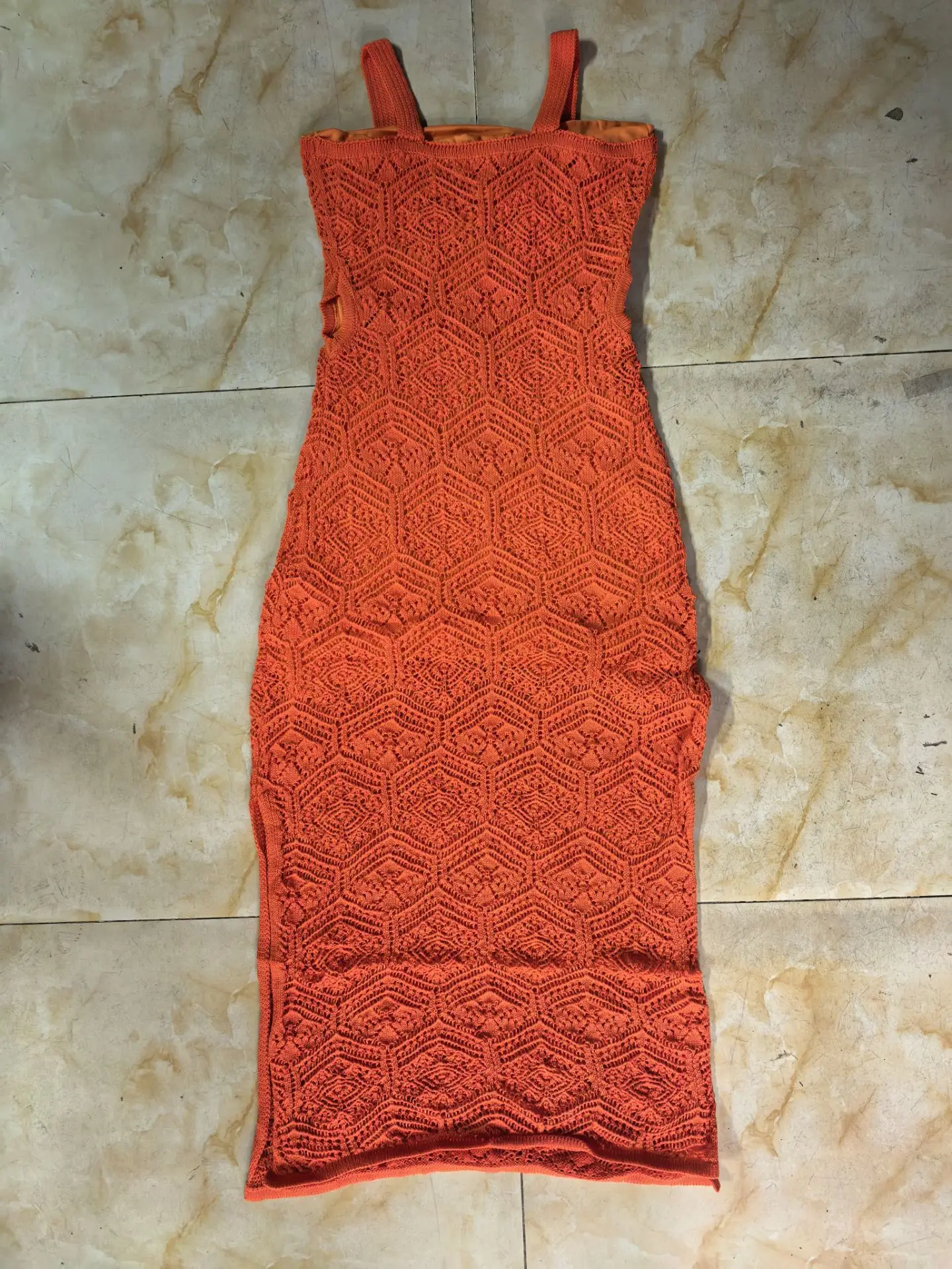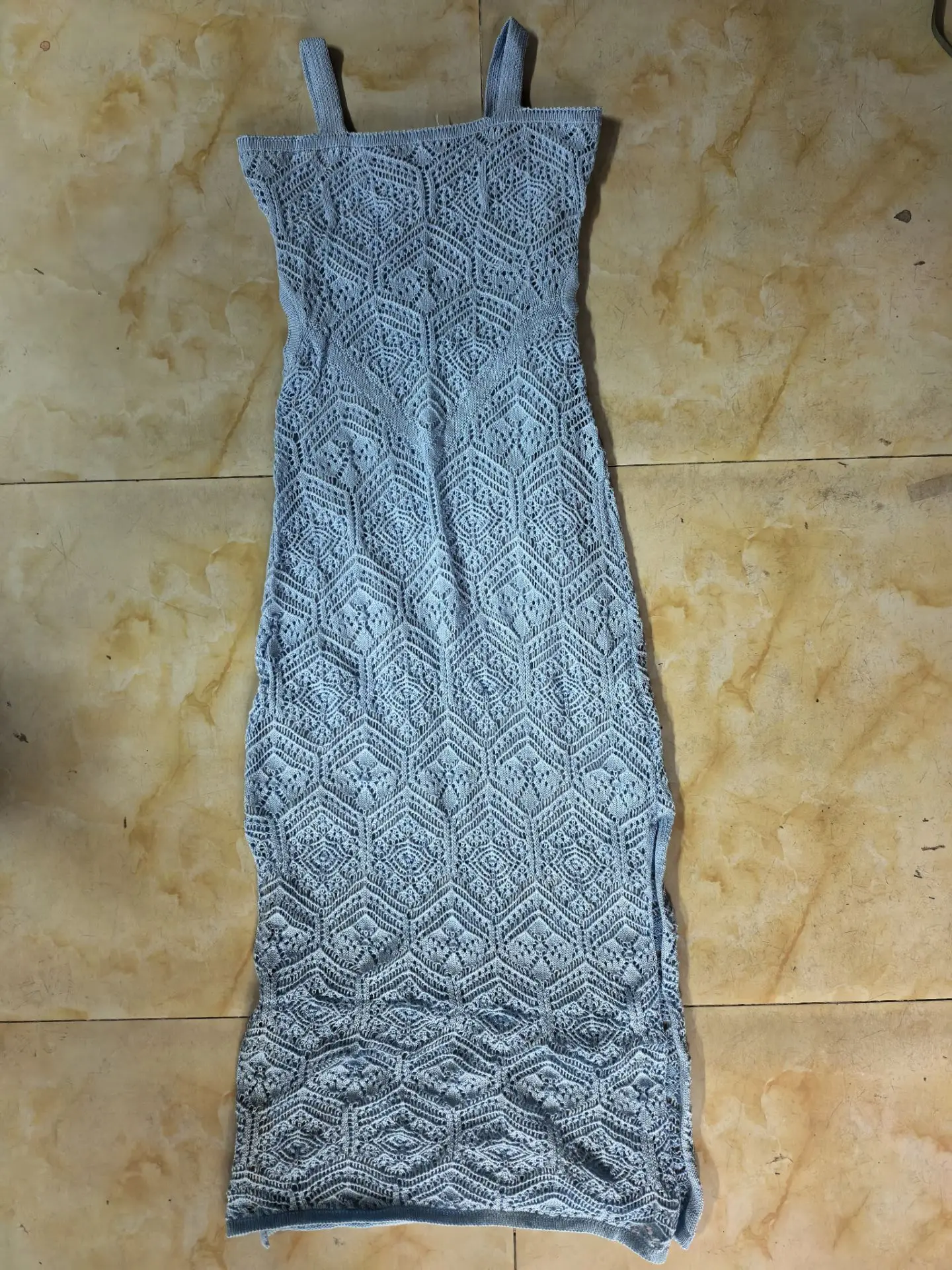 STOCK 4Colors Knitted Women Dress Cut Out Beach Maxi Dress Slit Crochet Beachwear Cover up S-XL