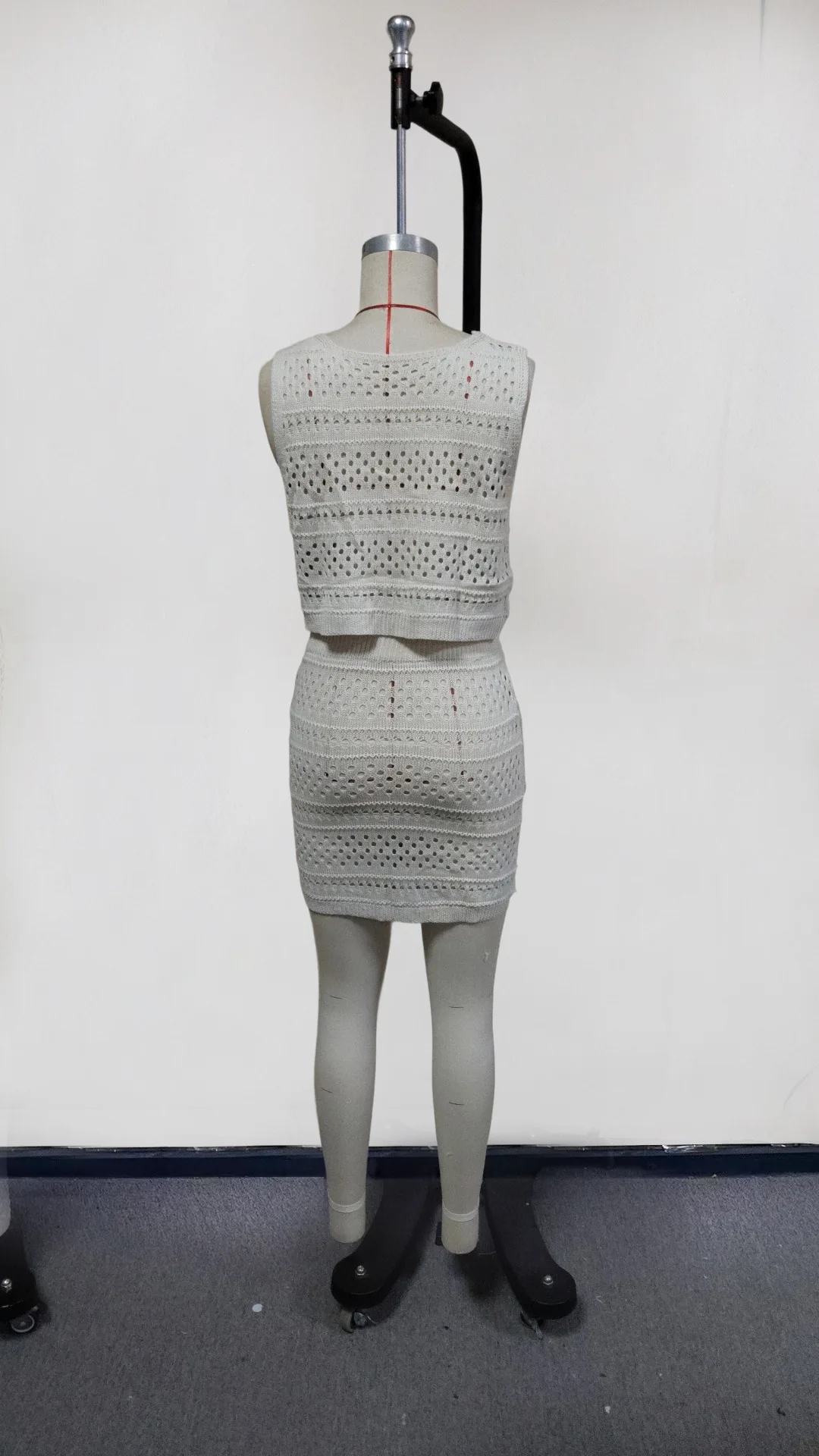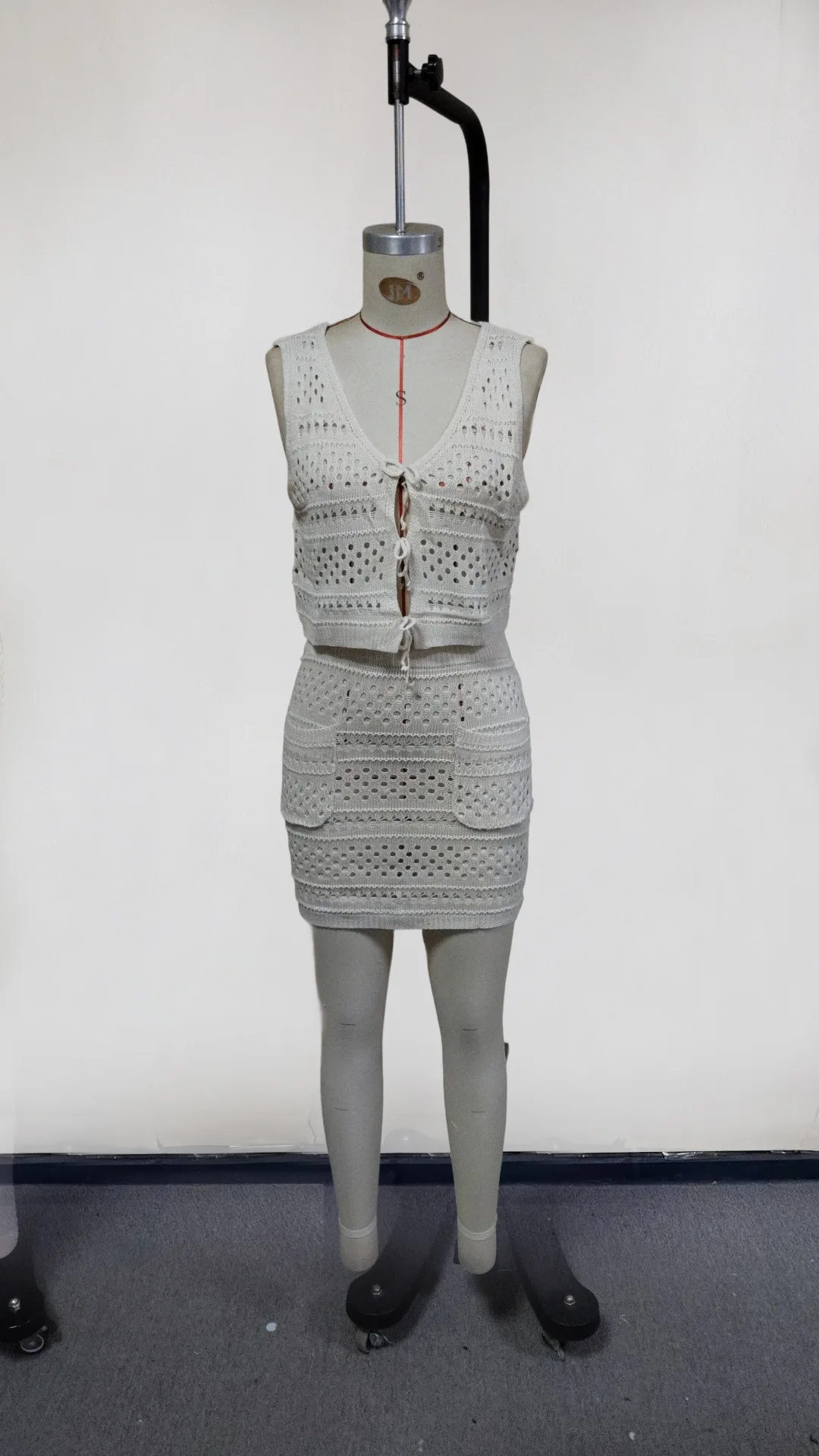 STOCK Crochet Women's Two Pieces Set Sleeveless Shirt Top and Mini Skirt With Pocket Set Swimsuit Cover up S-L