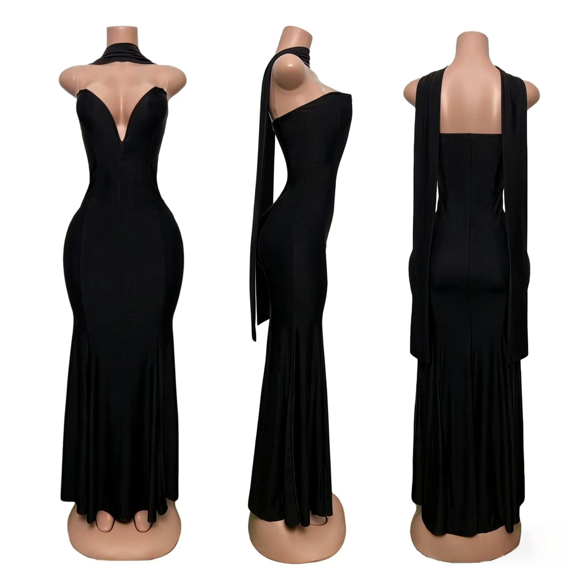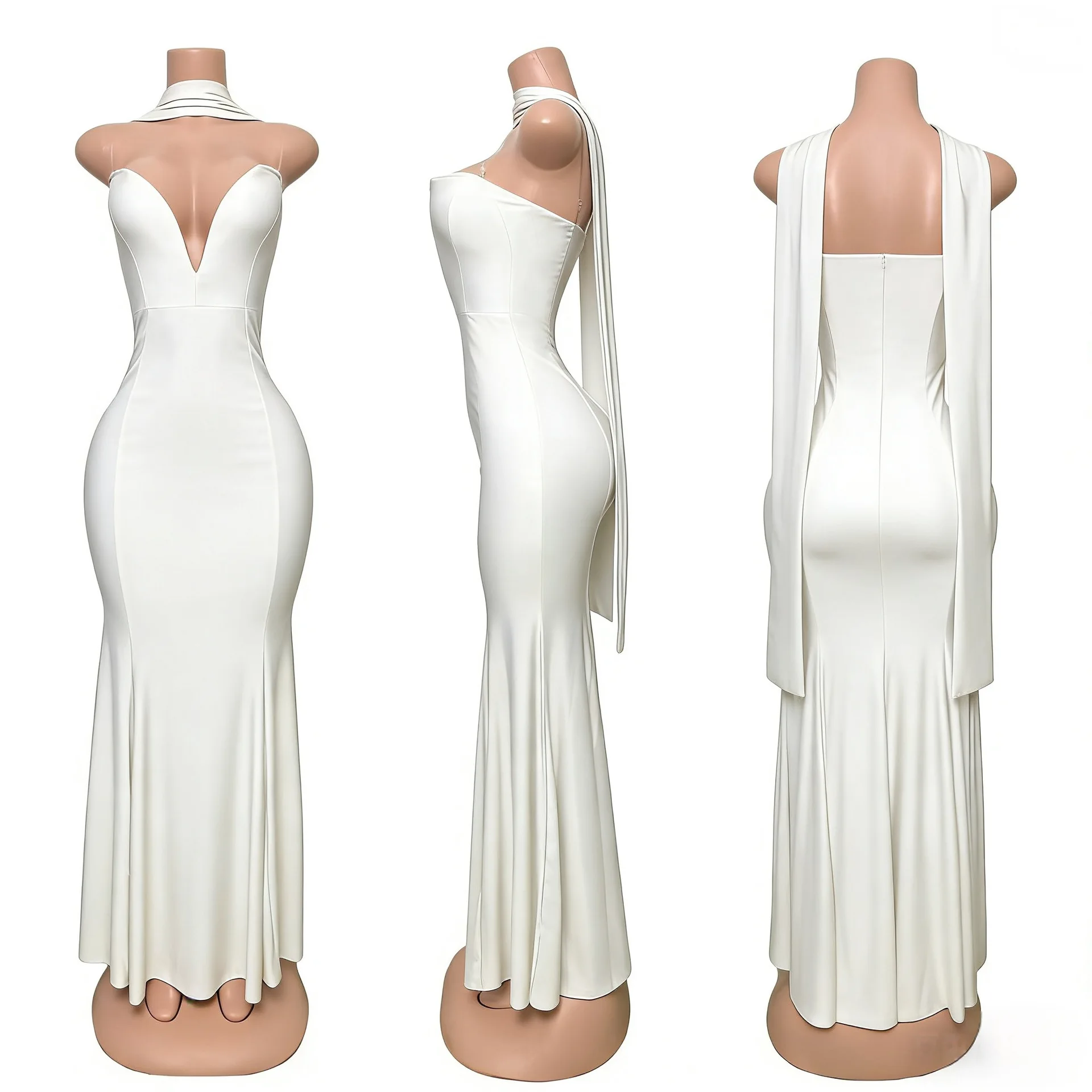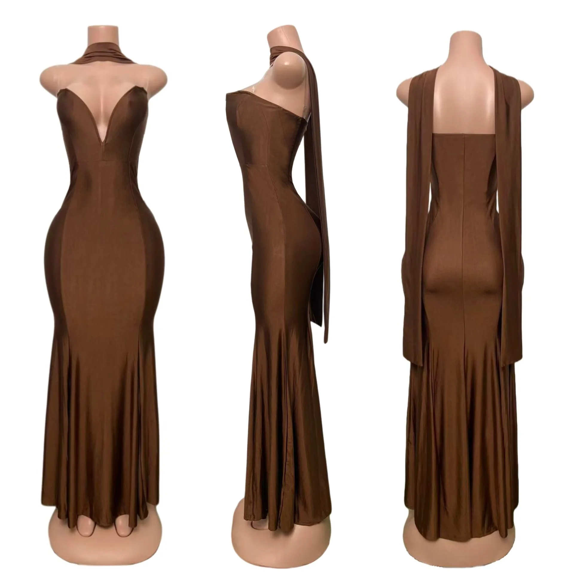 STOCK 4Colors V-NECK Women Dress Bodycon Maxi Dress Party Vestidos With NECK Band S-L