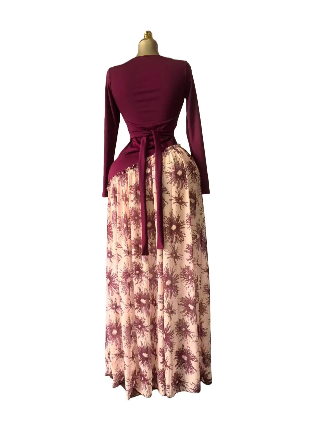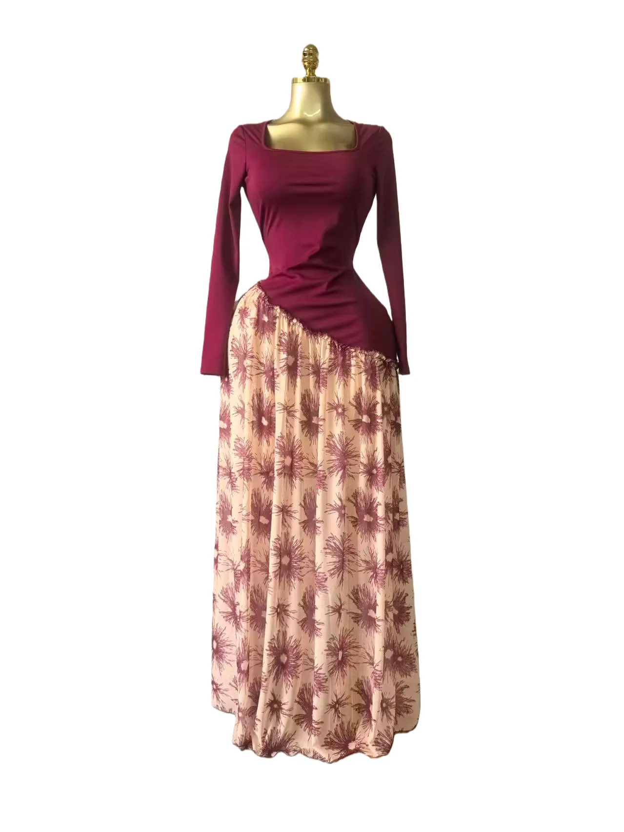 NEW STOCK Print Long Sleeve Women Dress Flare Curved Maxi Dress Plus Size Casual Gown S-2XL