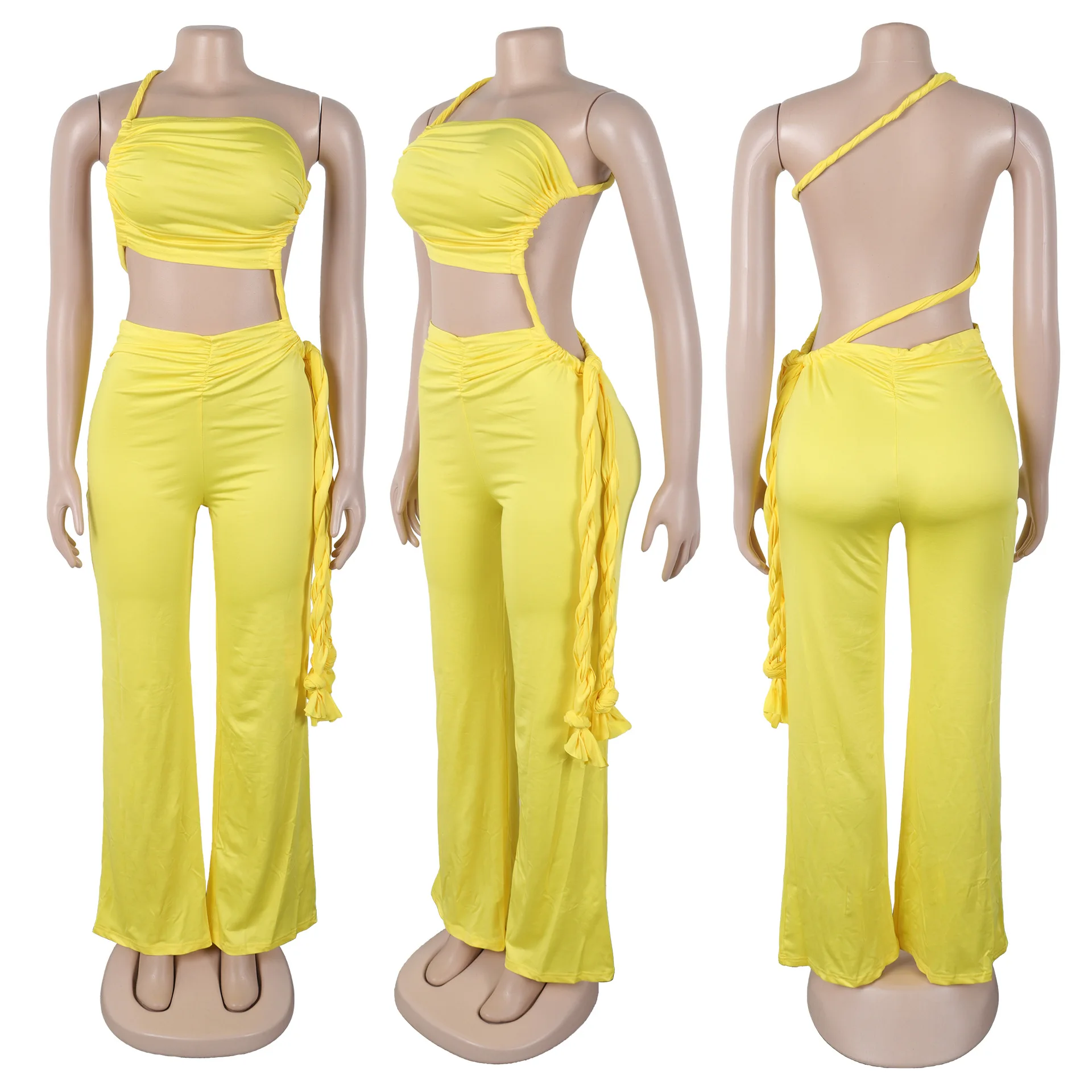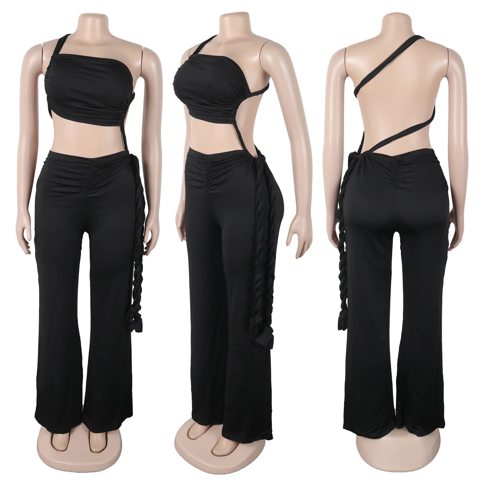 STOCK 5Colors Fitness One Shoulder Plus Size Women Clothing One Piece Bodysuit Jumpsuit Wide Leg Pants S-2XL