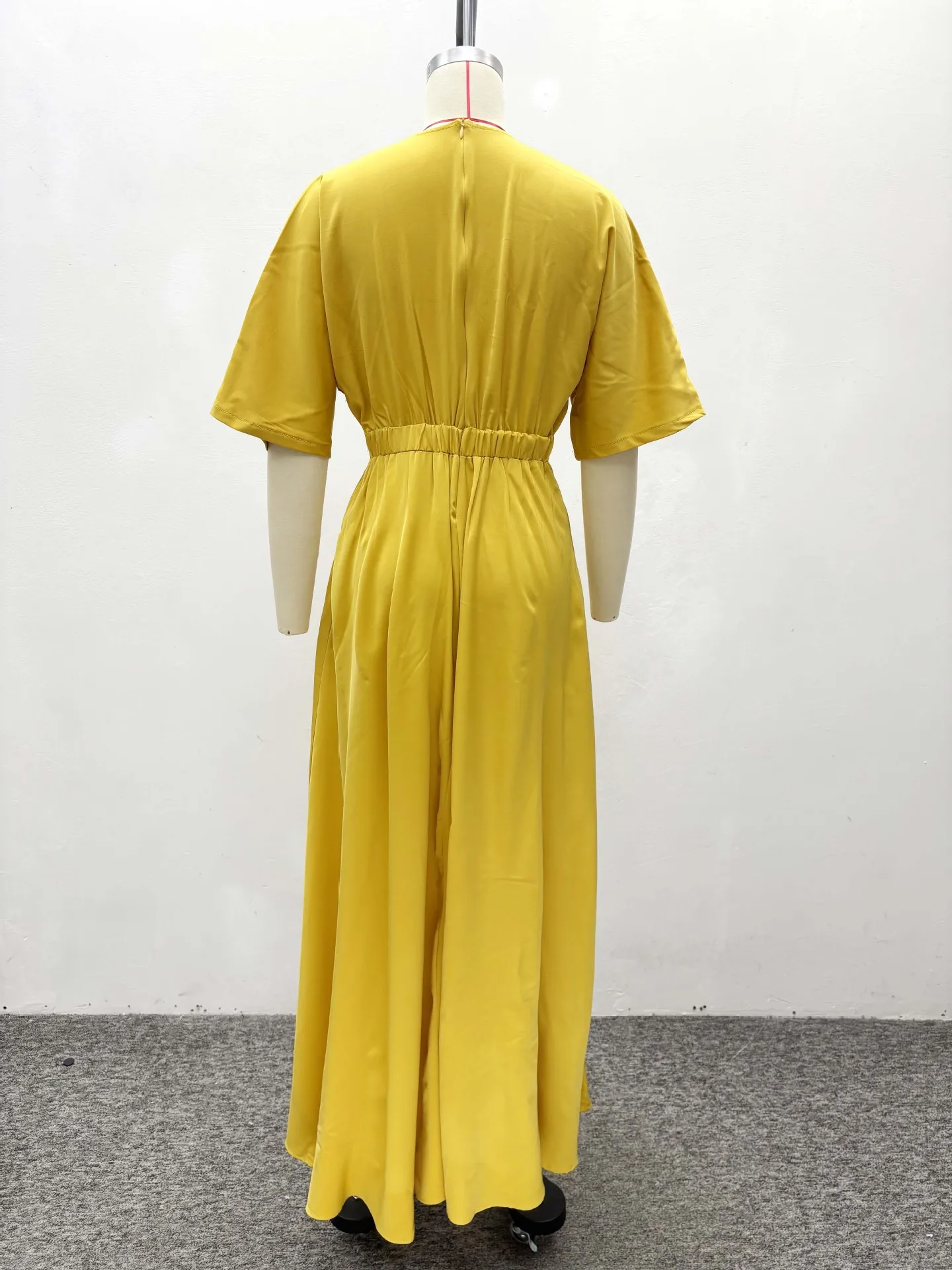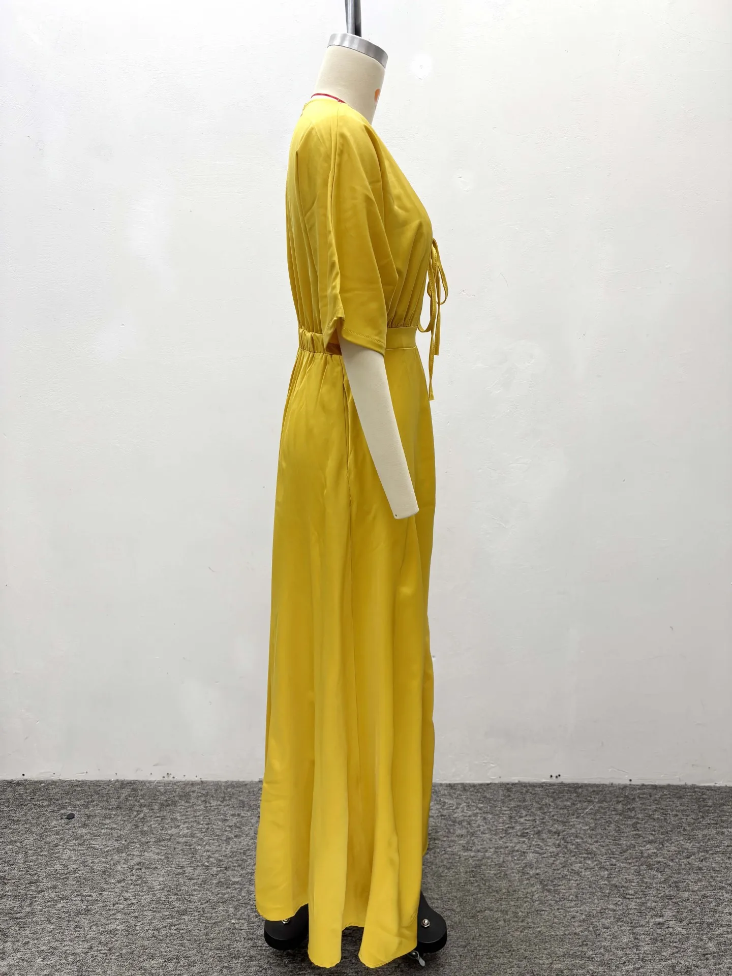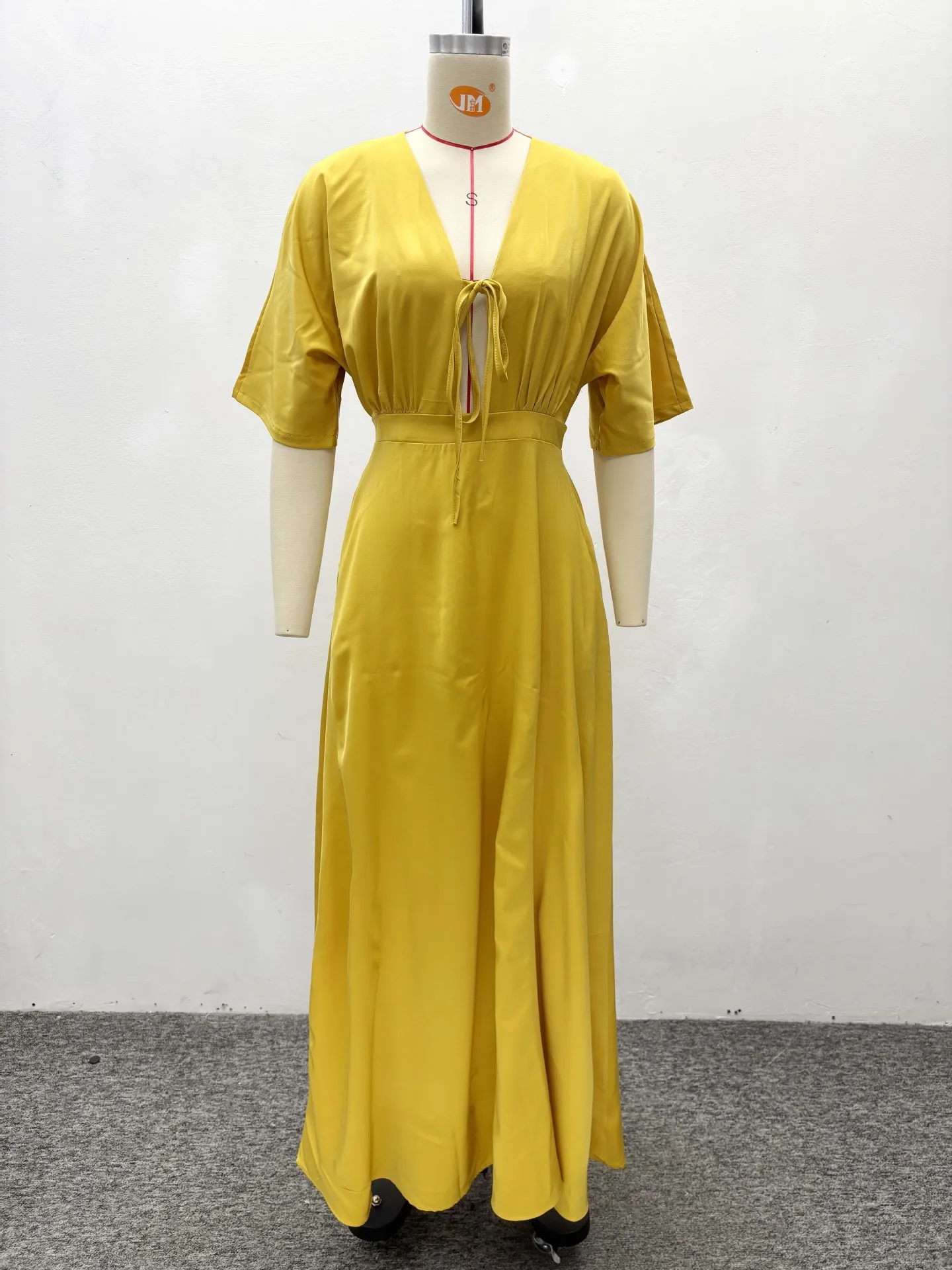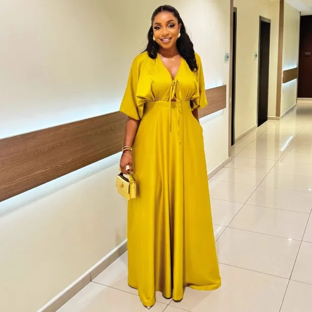 STOCK Ties Front Short Sleeve Women Dress Flare Maxi Dress Plus Size Beach Robe S-2XL