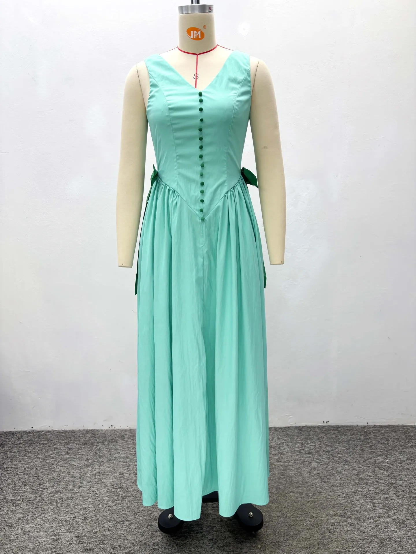 STOCK V-NECK Buttons Down Women Plus Size Dress Sleeveless Maxi Dress Africa Casual Robe S-2XL
