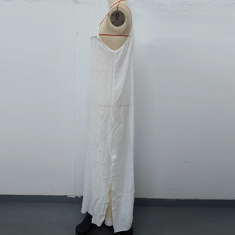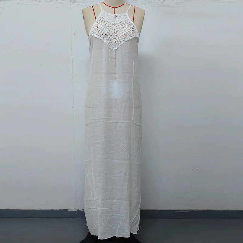 STOCK Two Colors Women Dress Sleeveless Crochet Maxi Dress See Through Swimsuit Cover Ups S-L
