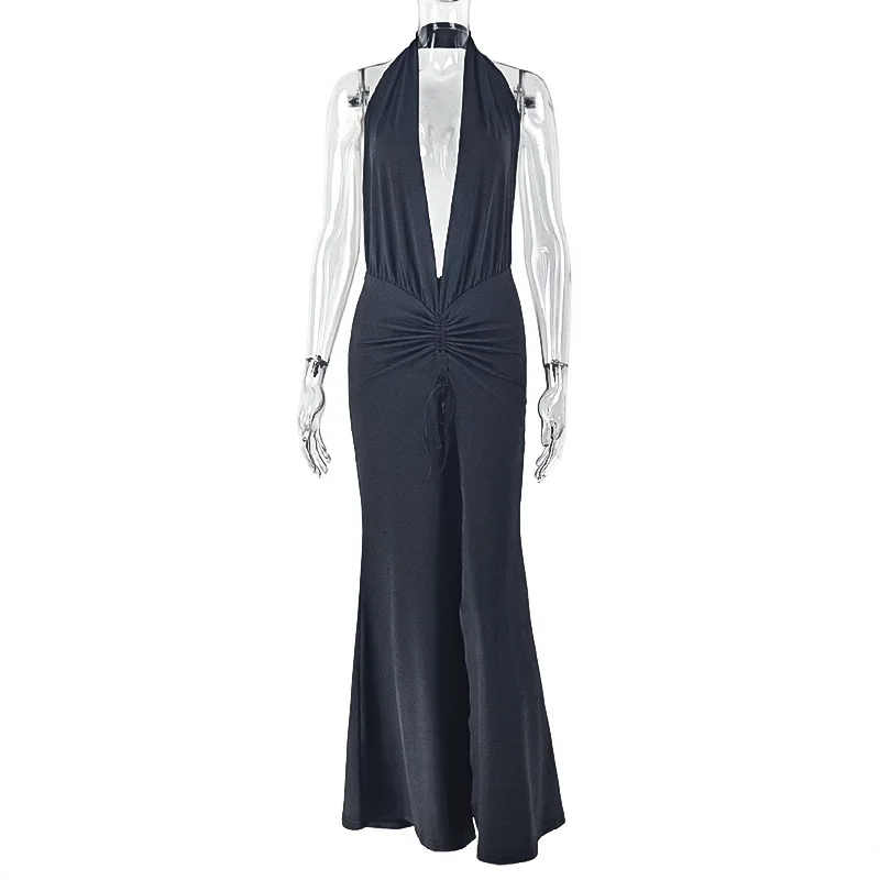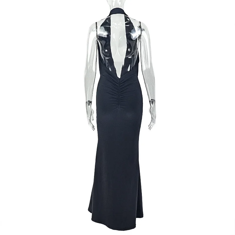 STOCK Two Colors Deep V-NECK Plunge Backless Maxi Dress Sleeveless Slit Women Beach Dress S-L