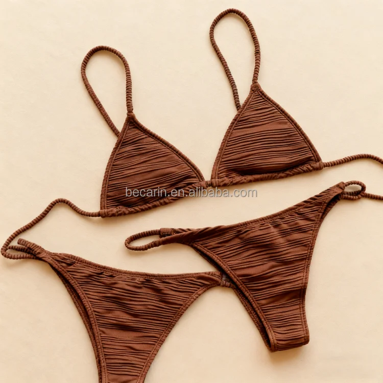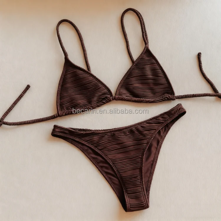 2026 Women's High Waist Bikini Texture Fabric XL Size Custom Private Label Sexy Beachwear Low MOQ OEM Bathing Suits