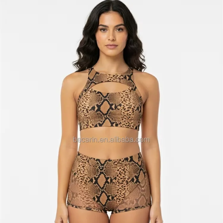 2026 Women Snake Printed Fabric Cross Strap Dancewear Set Sports Bra High Waist Bottom Dance Wear Yoga Manufacturer Own Label