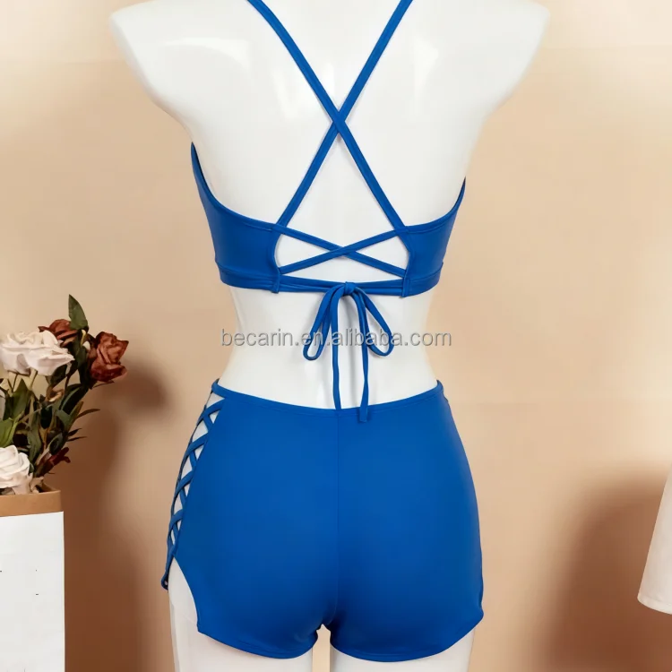 Women's Two- Piece Recyclable Fabric Training Dance Wear Solid Sexy Cross Straps Dance Outfits Thongs Pole Dancing Clothing