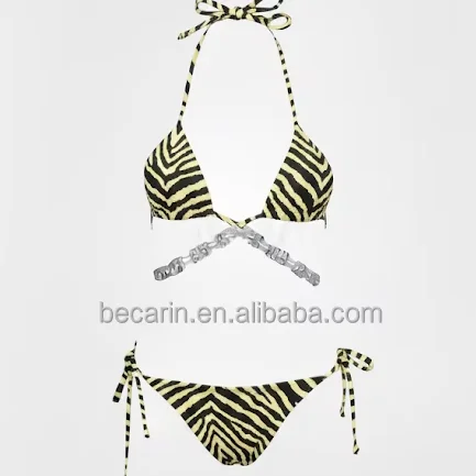 2026 Euro-American Halter Neck Nylon Fabric Tie Straps Style Women's Swimsuit Stylish Printed Bikini Triangle Beachwear Factory