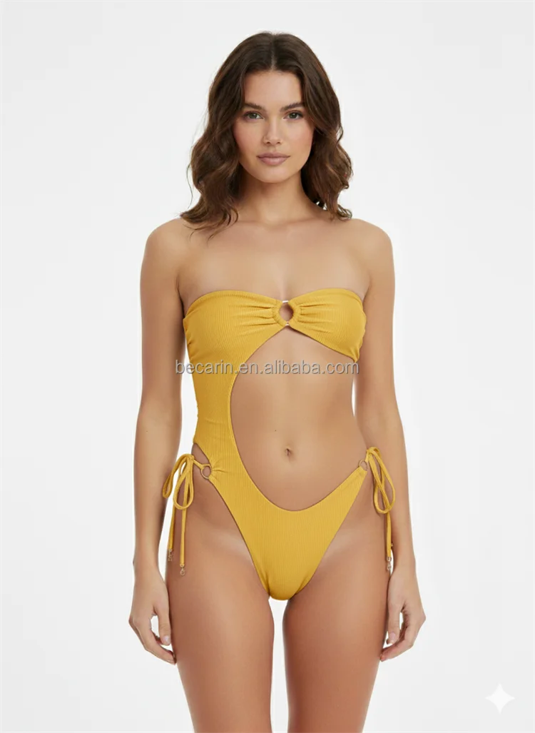 2026 Women Strapless One Piece Fabric Cutout Bikini Set Decorative Trim Sports Bra High Waist Bottom Manufacturer Own Label