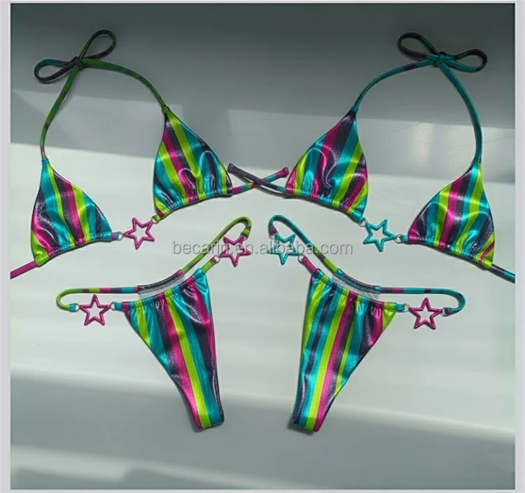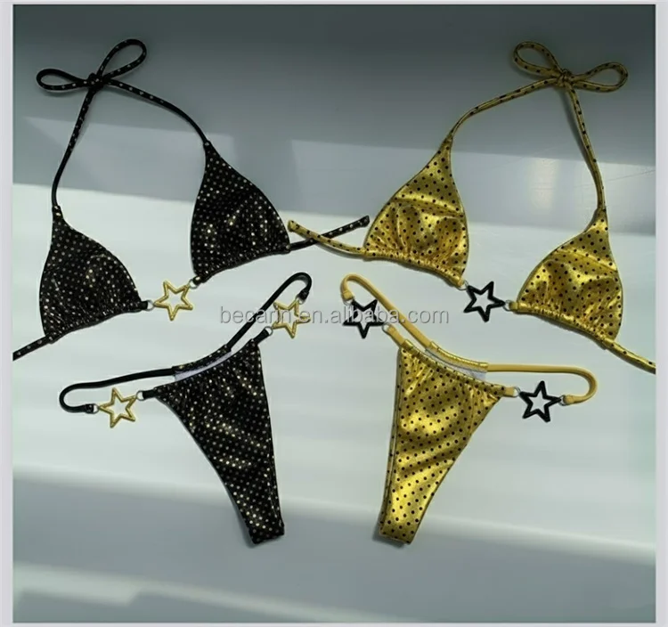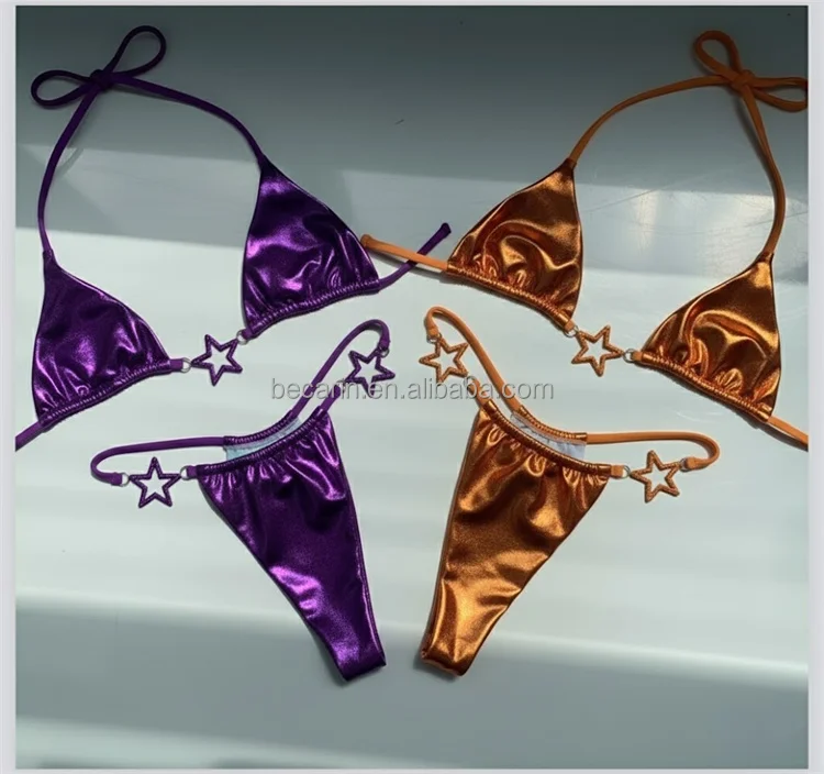2026 Hot Girl Euro-American Satin Two piece Triangle Style Women's Swimsuit Stylish Solid Bikini Sexy Beachwear Factory