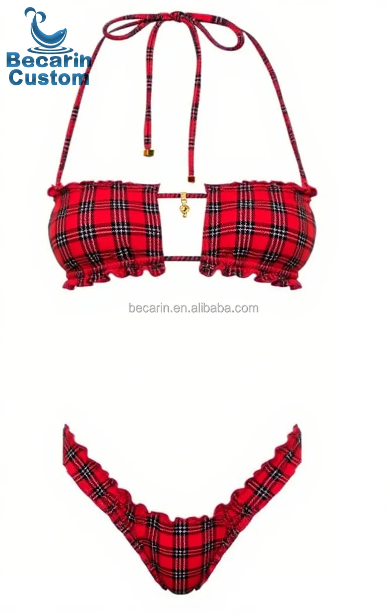 MLY Ruffle Bikini Summer Two Piece Suit Sexy Swimwear Bandage Biquini Triangle Swimsuit Printed Bathsuit