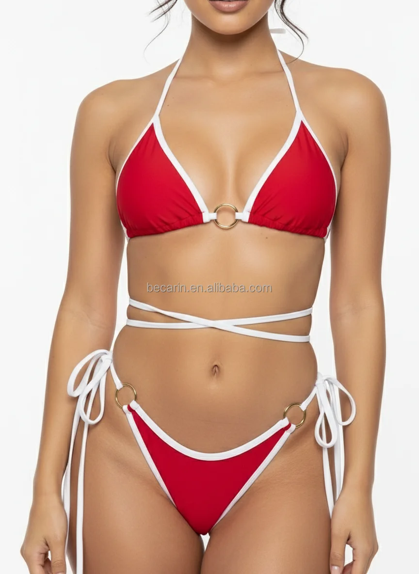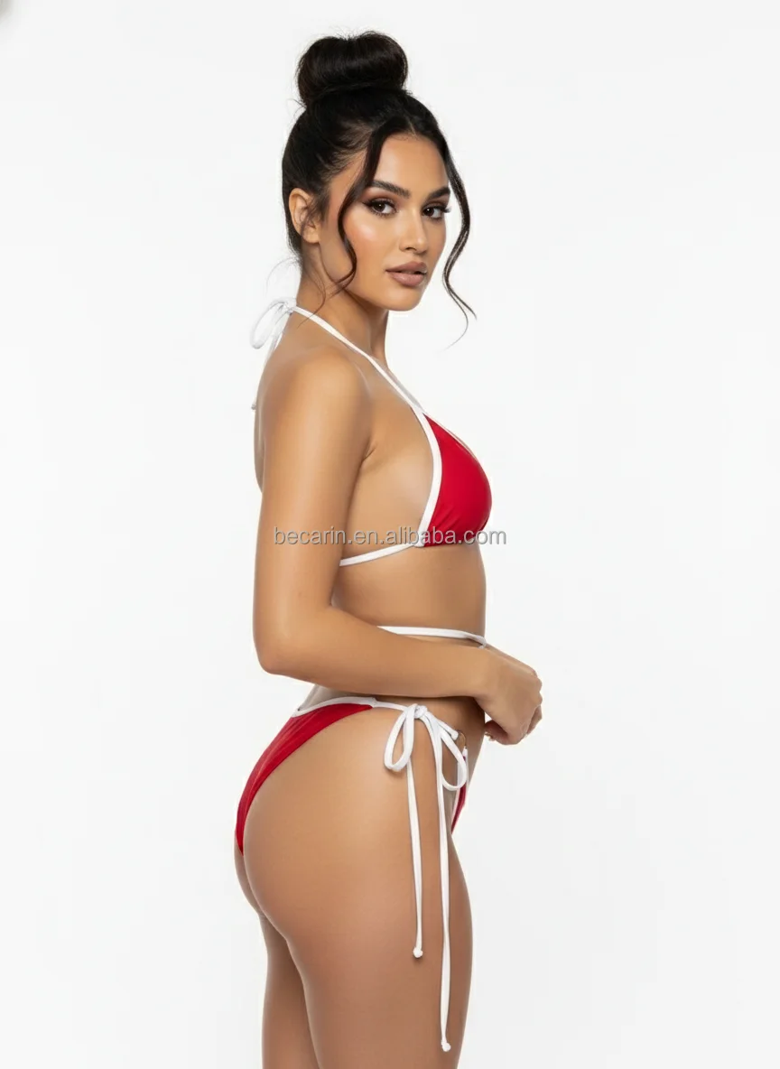 2026 Euro-American Style Triangle Bikini Solid Thong Design Swimwear Women High Cut Two Pieces Swimsuit Factory Manufacturer