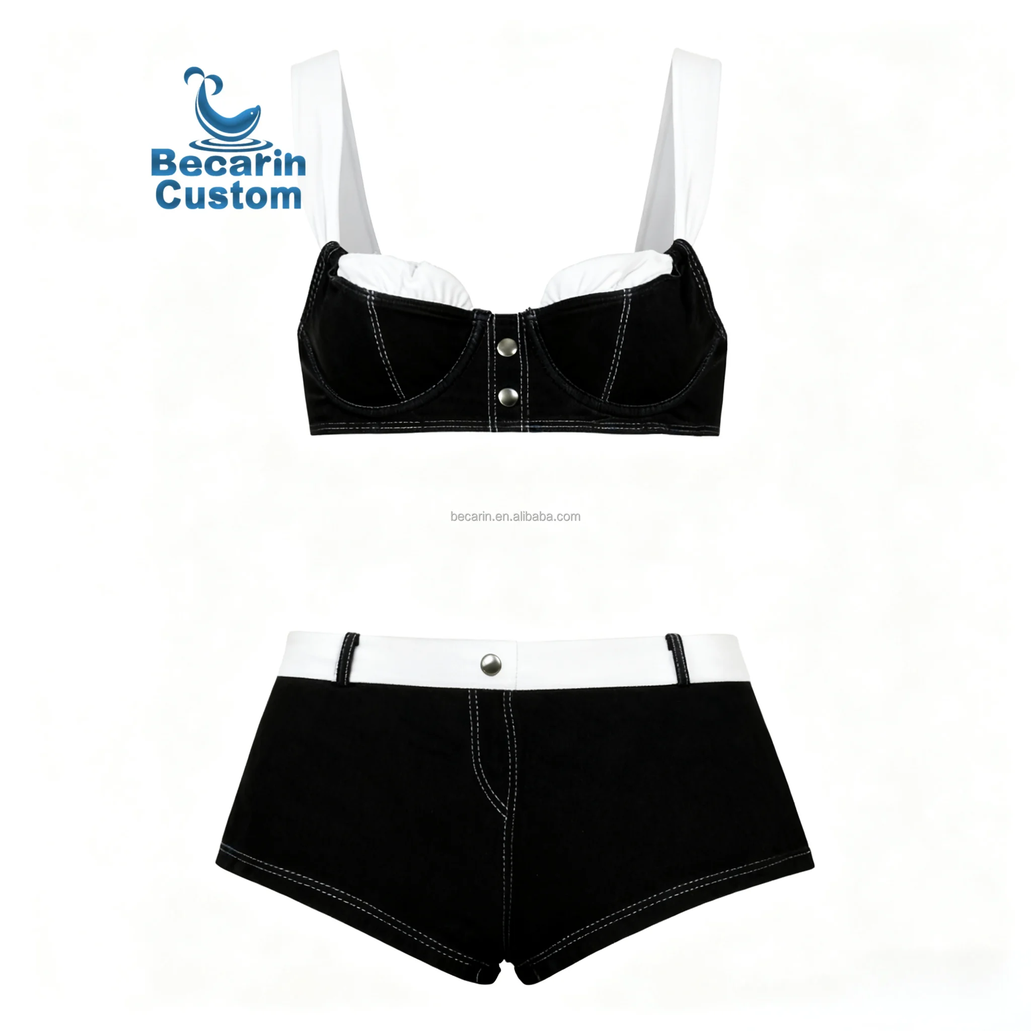 MLY Best Selling Solid Black and White Women Ladies Beachwear Custom Swimwear Sexy Micro Bikini Bathing Suits