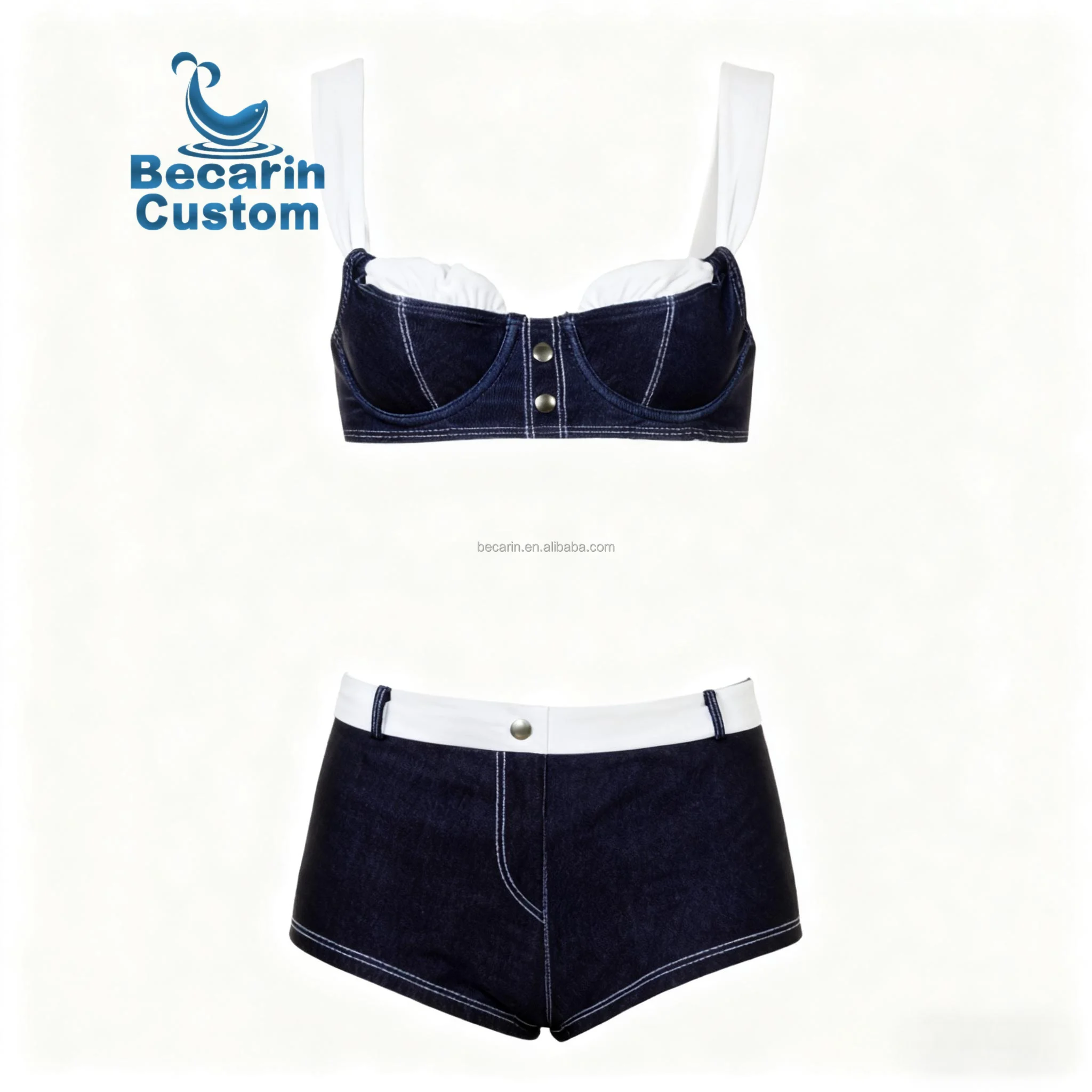 OEM 2026 Summer Trend Denim Women's Swimwear Sets Luxury High-elastic Wrinkle-resistant Swimsuit Resort Wear Bikinis Beachwear