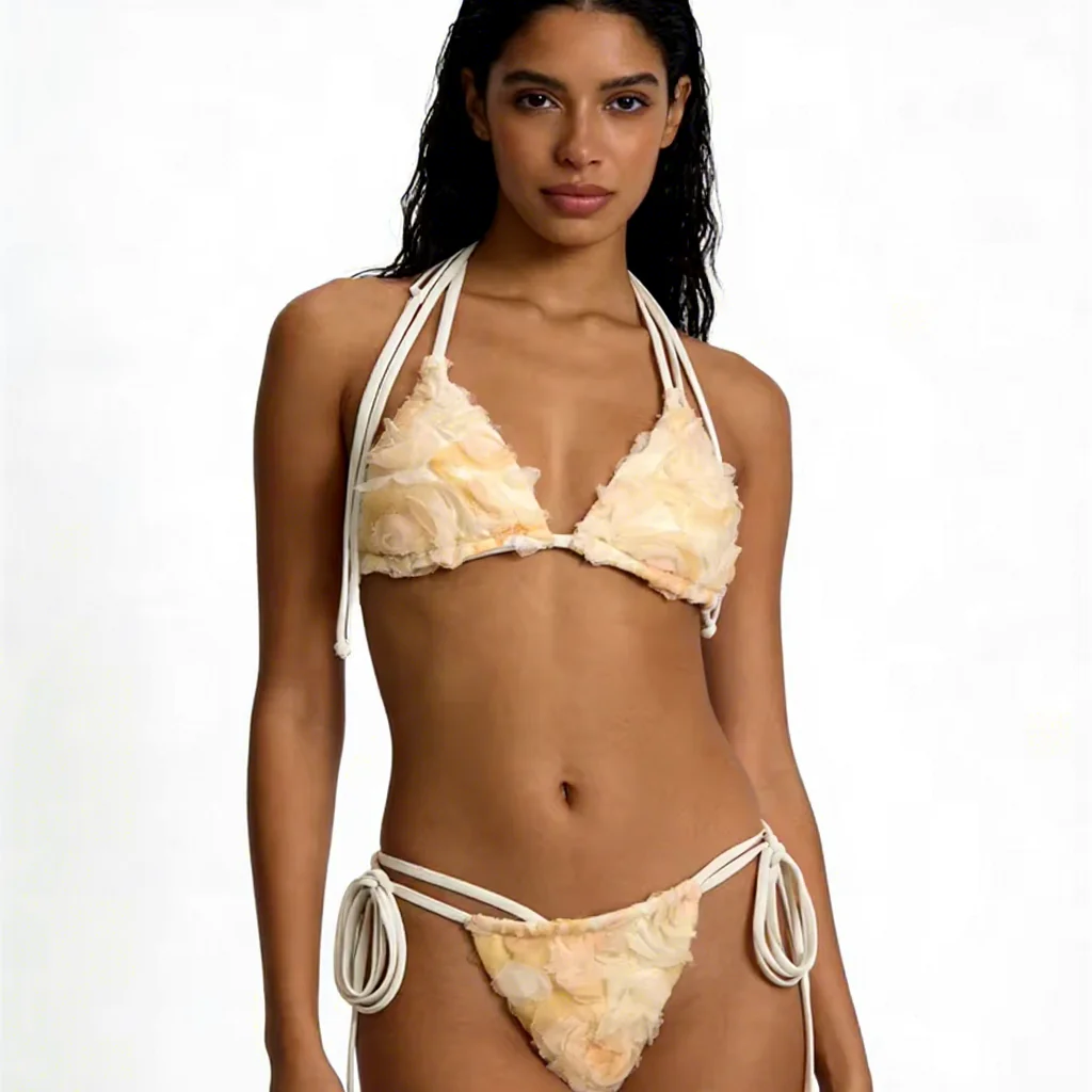 2026 Flower Euro-American Style Women's Seamless Swimsuit New Stylish Petal Bikini Triangle Beachwear From Factory Manufacturer