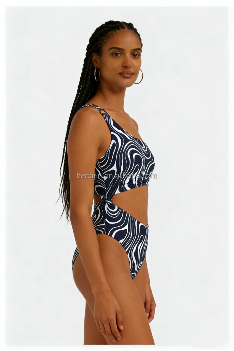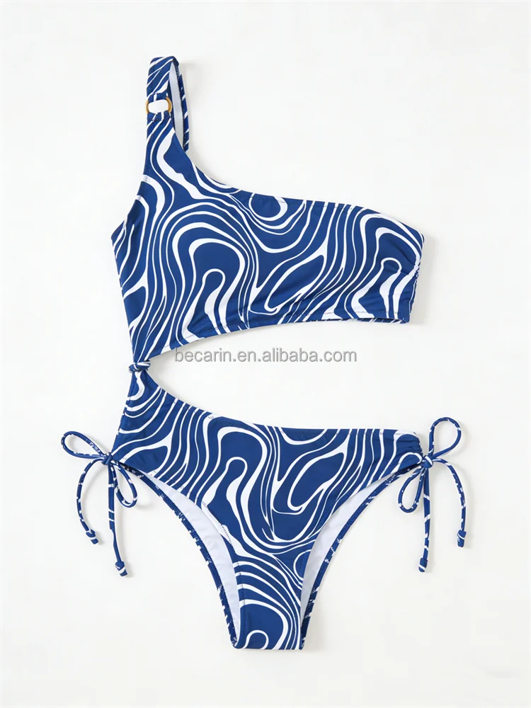 MLY Factory Wholesale Bikini Custom Sexy Bodysuit Jumpsuit Beachwear Backless Striped Print One Piece Swimwear