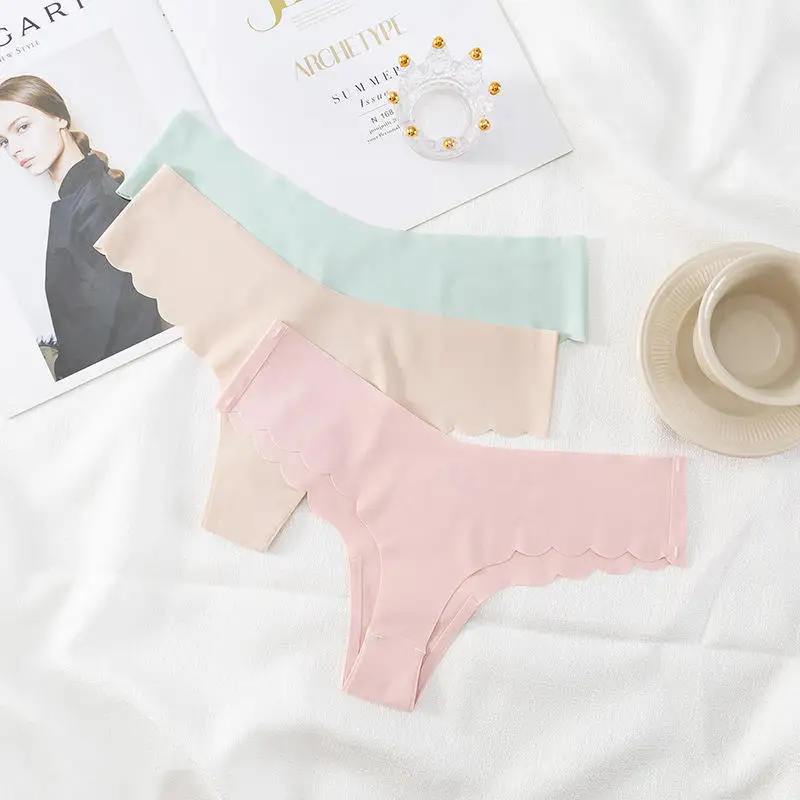 G String Ultra-thin Skin-friendly T Back Women's Stitching Lace Sexy Briefs Ice Silk Without Trace Erotic Thong