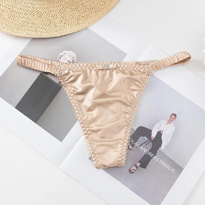 Elastic Low Rise Satin Panties for Women Sheer Soft Seamless G String Bikini Underpants Mini Female Lingerie Bragas Sexys Mujer