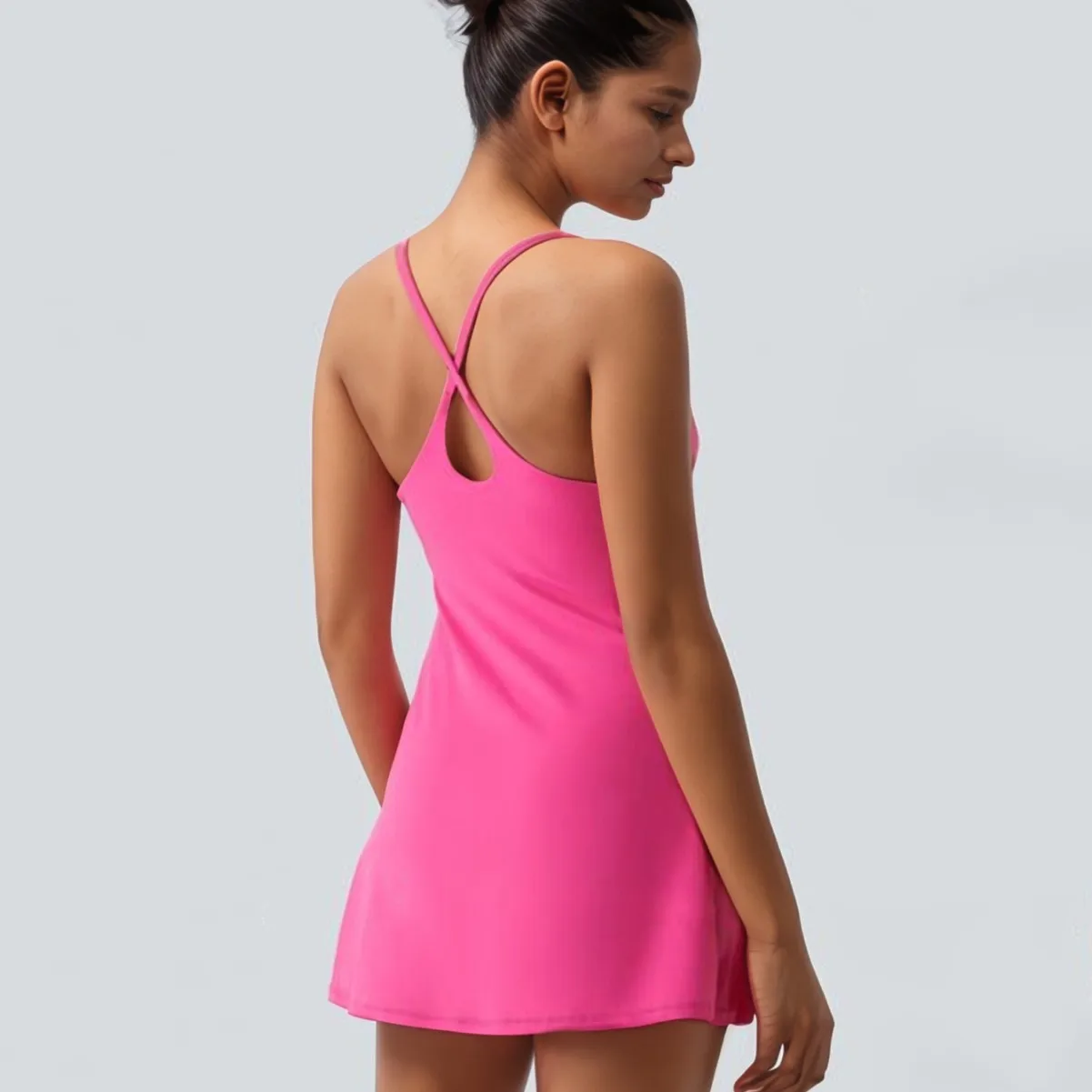 2026 Women's Breathable Anti-Exposure Tennis Skirt New European American Sports Two-Piece Set Cross Strap Front Fitness