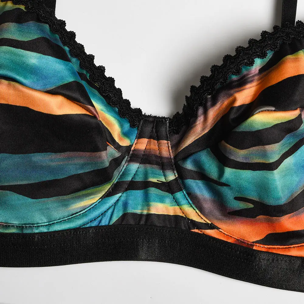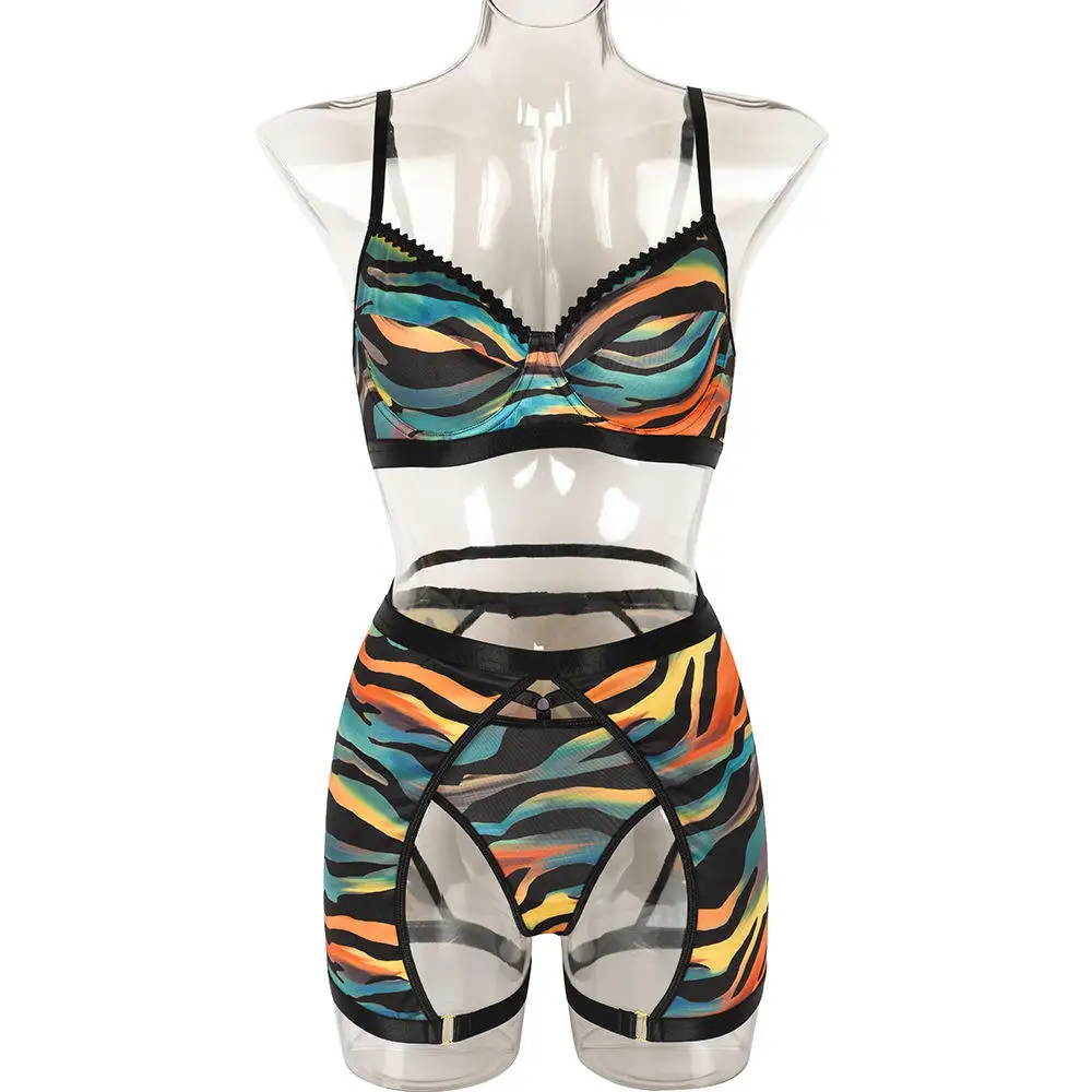2026 New Three Piece Sexy Women's Lingerie Set Multicolor Stripe Splicing Beach Leisure Steel Ring Belt Lace Decoration ODM