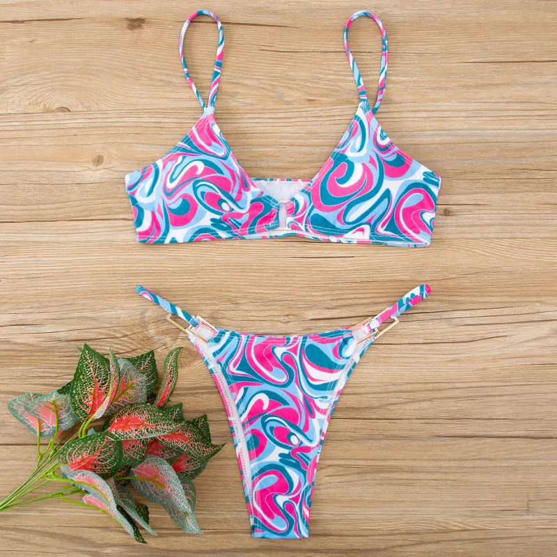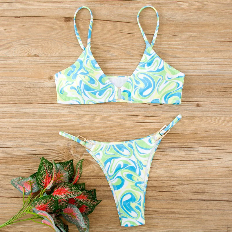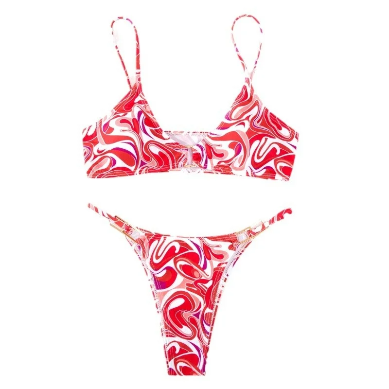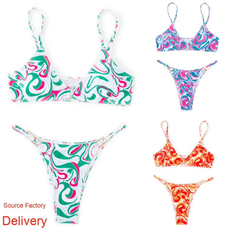 MLY Ruffle Bikini Summer Two Piece Suit Sexy Swimwear Bandage Biquini Triangle Swimsuit Printed Bathsuit