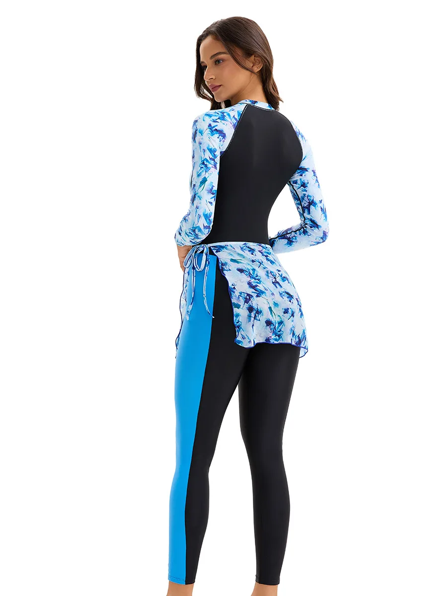 European American Women's Long-Sleeved Conservative Swim Trunk Sunscreen Swimsuit Muslim Full Surrounded Pants Beachwear