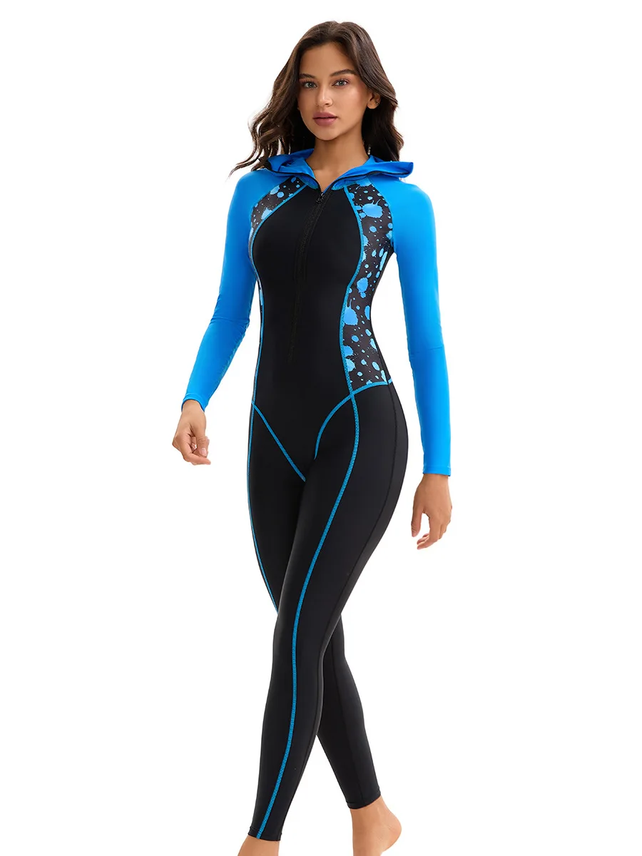 Conservative One-Piece Female Swimsuit Long Sleeves Sunscreen Muslim Style Cross-Border Regular Fit Breathable Spandex/Polyester