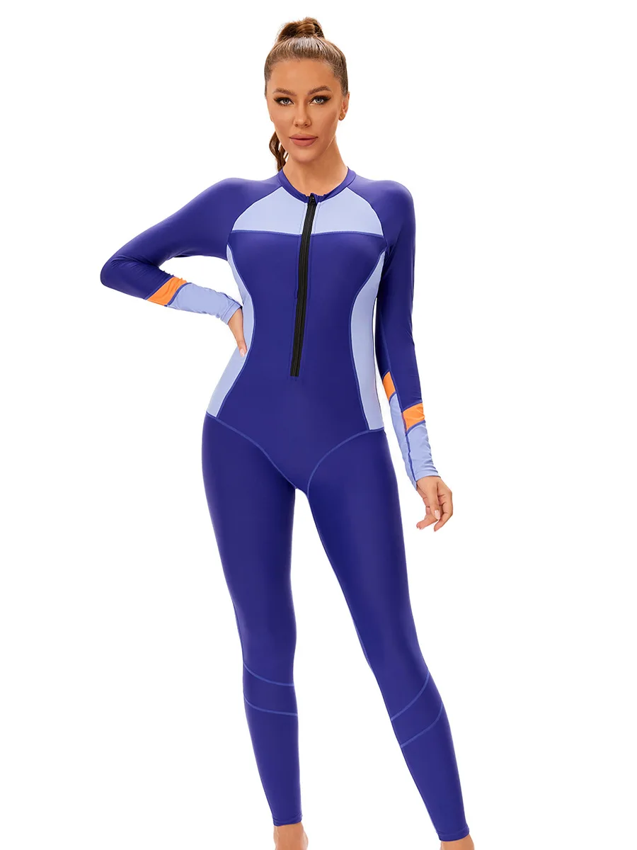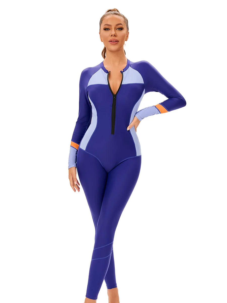 Muslim Conservative Ladies One-Piece Swimsuit New Color Long Sleeve Sunscreen Tight Fit Europe United States Foreign High Waist