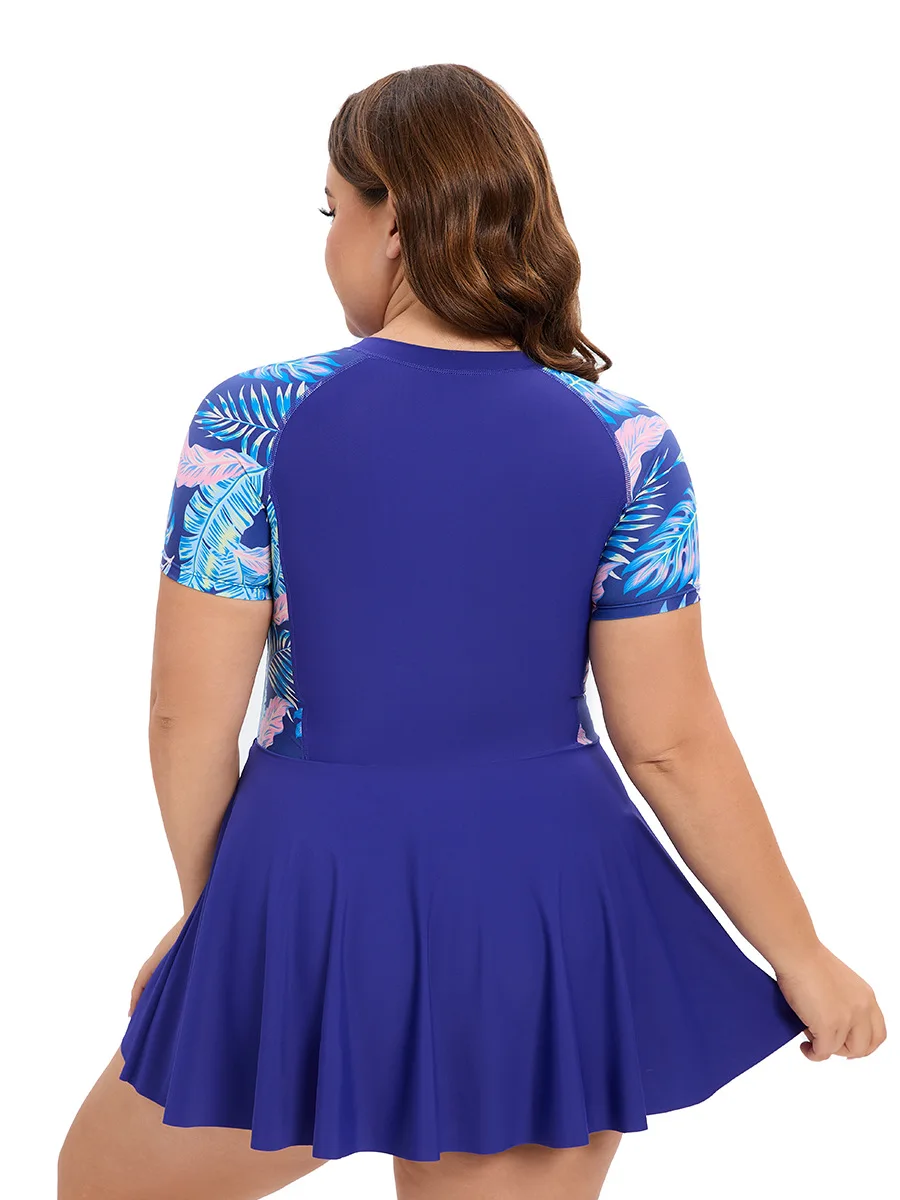 Women's Sexy Short Sleeve Plus Tight Triangle Bikini Conservative Floral Breathable Swimsuit Pearls Metallic European