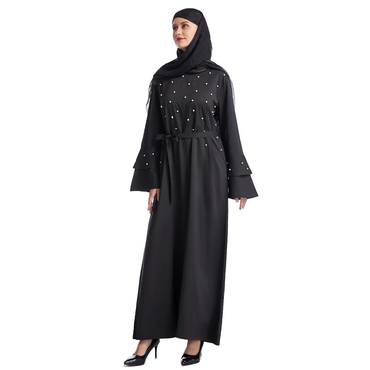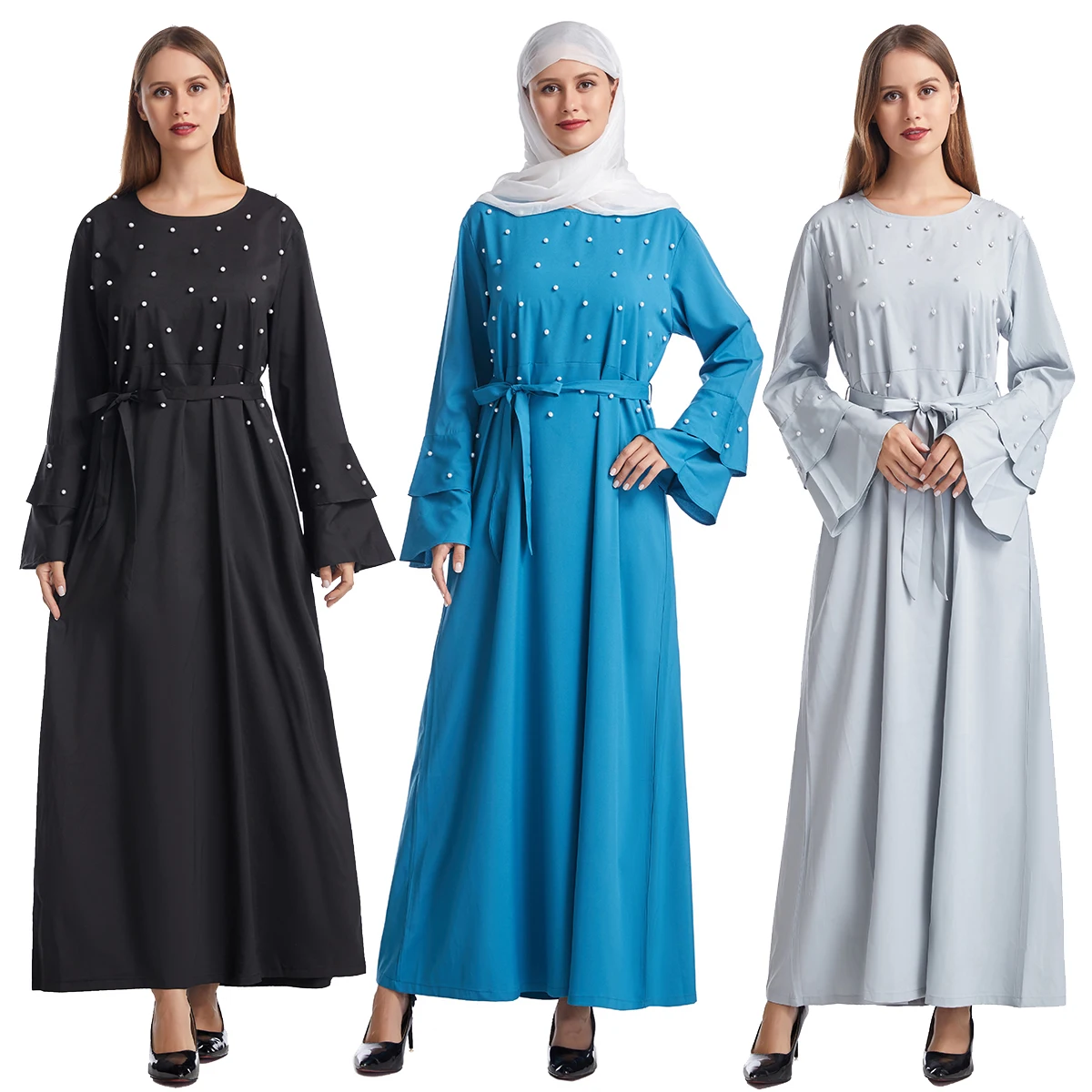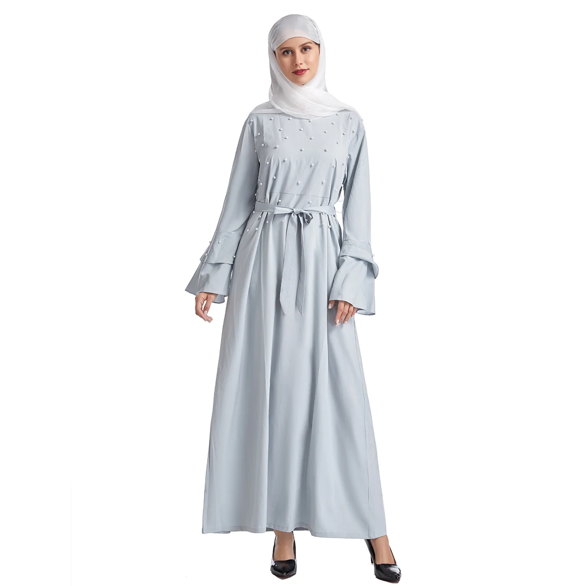 2026 Middle East Dubai Turkey Beading Solid Color Belt Organza Tea-Length A-Line Party Modest Abaya Muslim Jalabiya Dress
