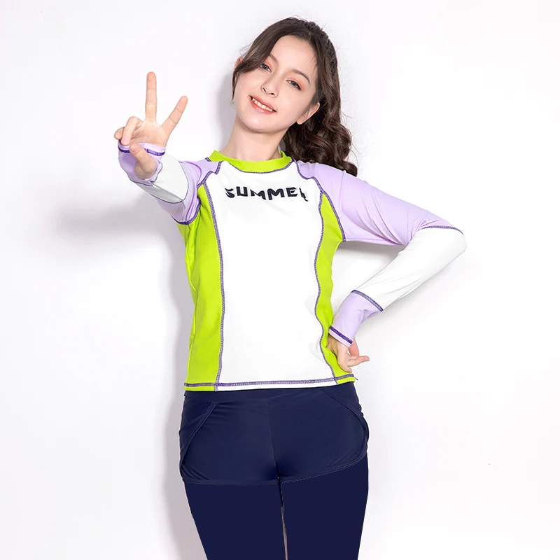Customized Teenager Girls Kid Children Muslim Modest Swimwear 3 Piece Set Pants Bottom Waterproof UV Protection Full Cover