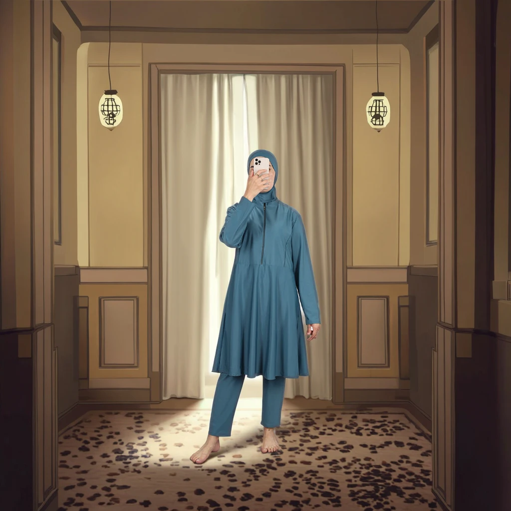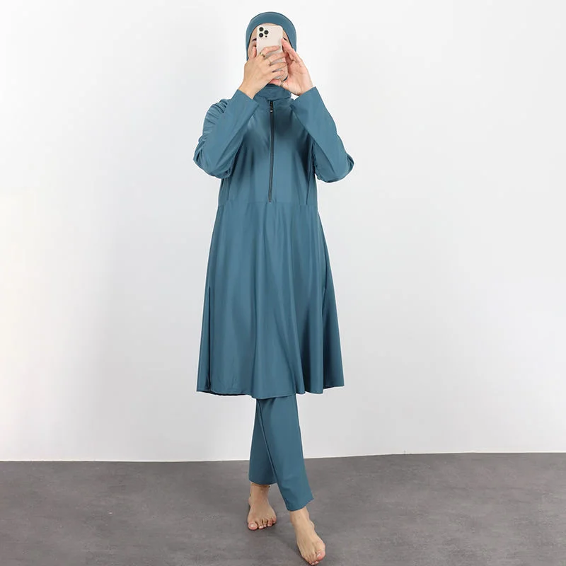 Modest Muslim Women's Burkini Swimwear Three-Piece Set Pants Solid Color Hijab Full Cover Breathable Quick Dry Spandex/Polyester