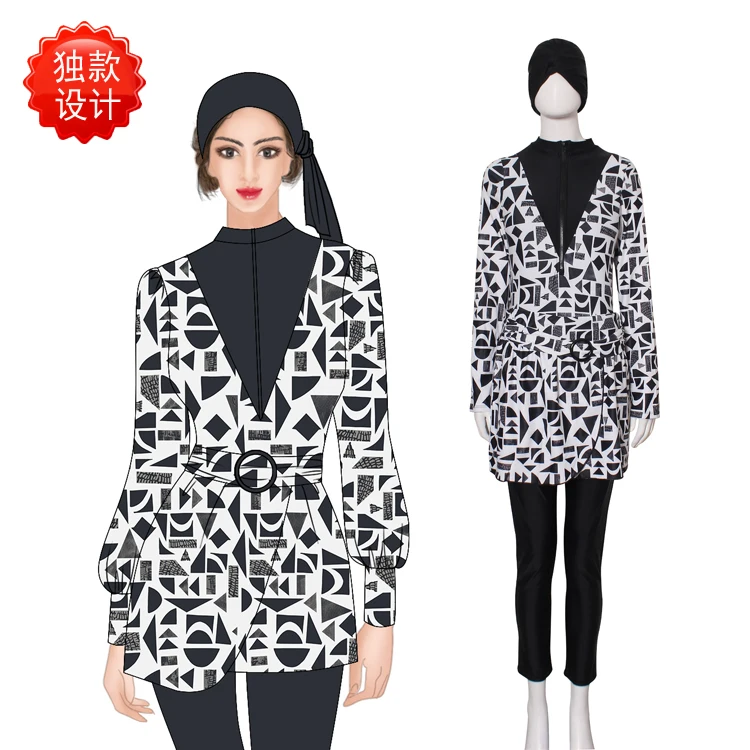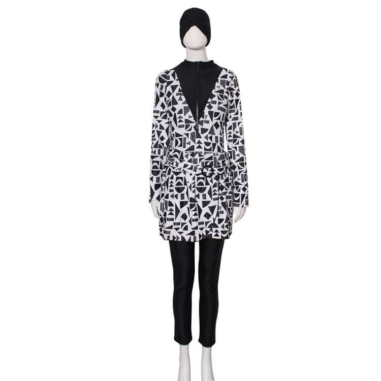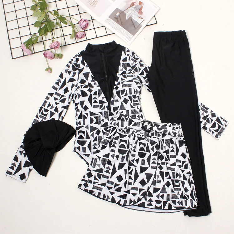 Angle Luna 2026 Muslim Modest Women's 4-Piece Gingham Swimwear Set with Pants Polyester/Nylon Beachwear