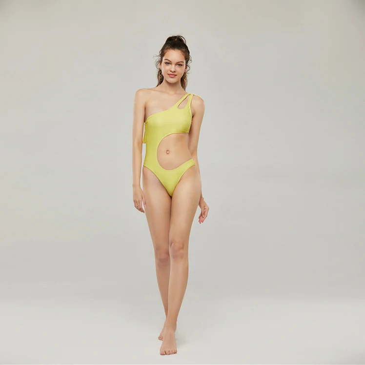 One Piece Swim Brief Women Plaid Pattern Quick Dry Anti-Uv Yellow Swimwear for Young Teen
