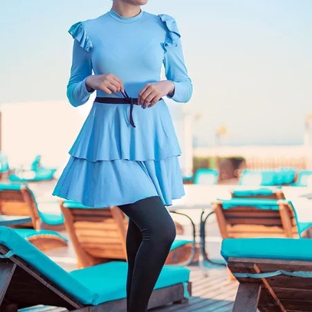 Customizable Plus Size Waterproof Solid Full Cover Muslim Style Women's Swimwear 3 Piece Set Low MOQ Beachwear