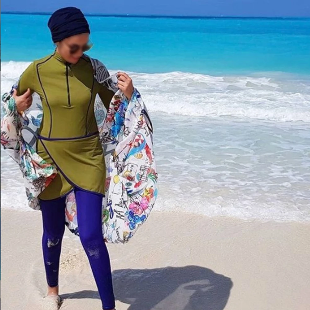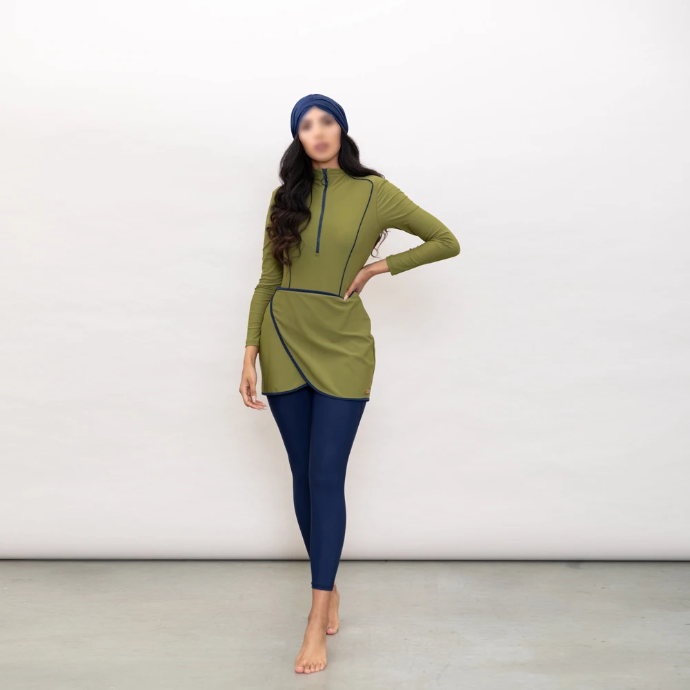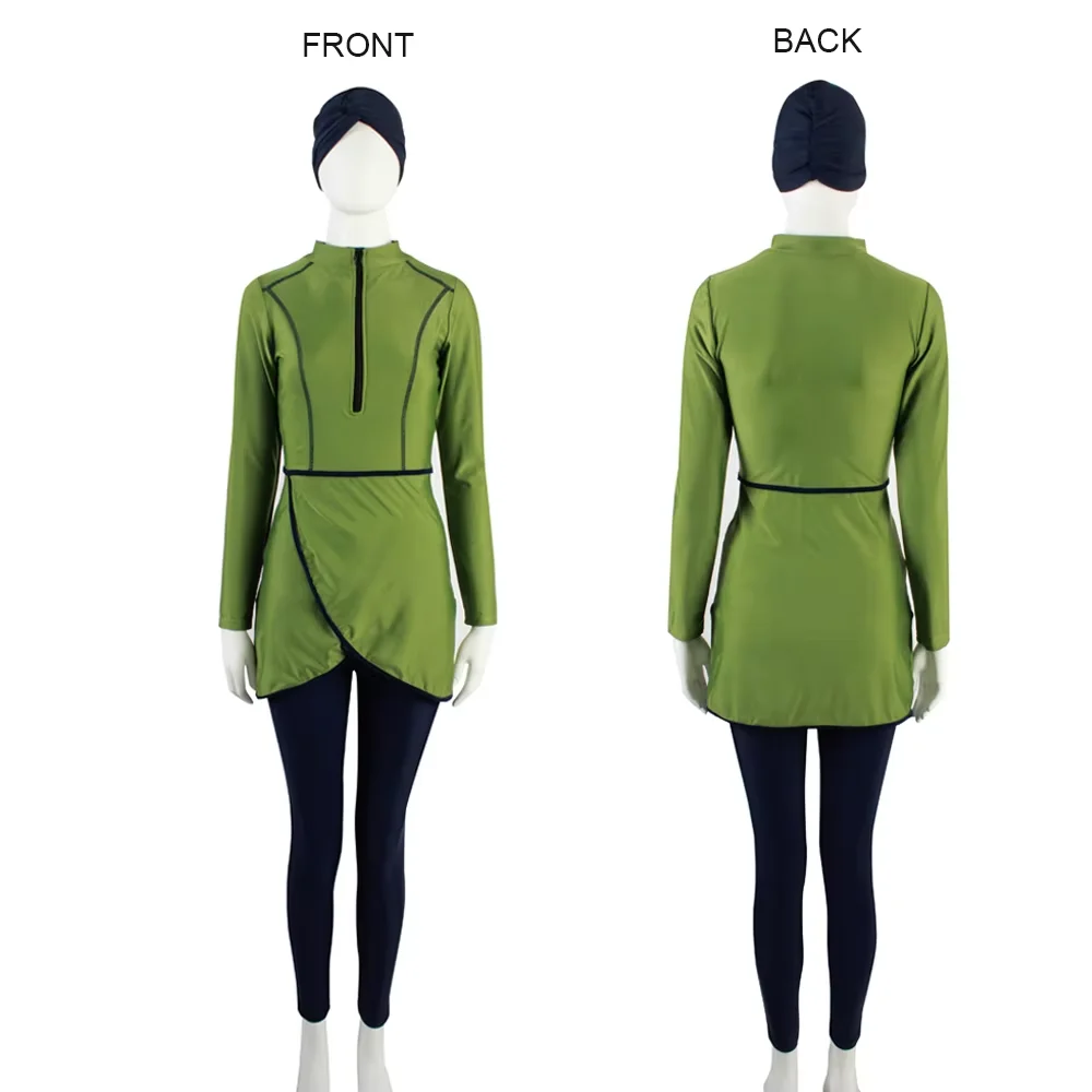 Brand High Quality Three Piece Pure Color Muslim Fashion Swimwear with Hijab Pants Breathable & Waterproof