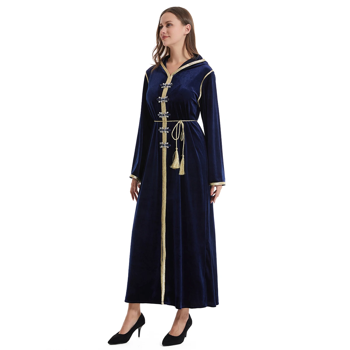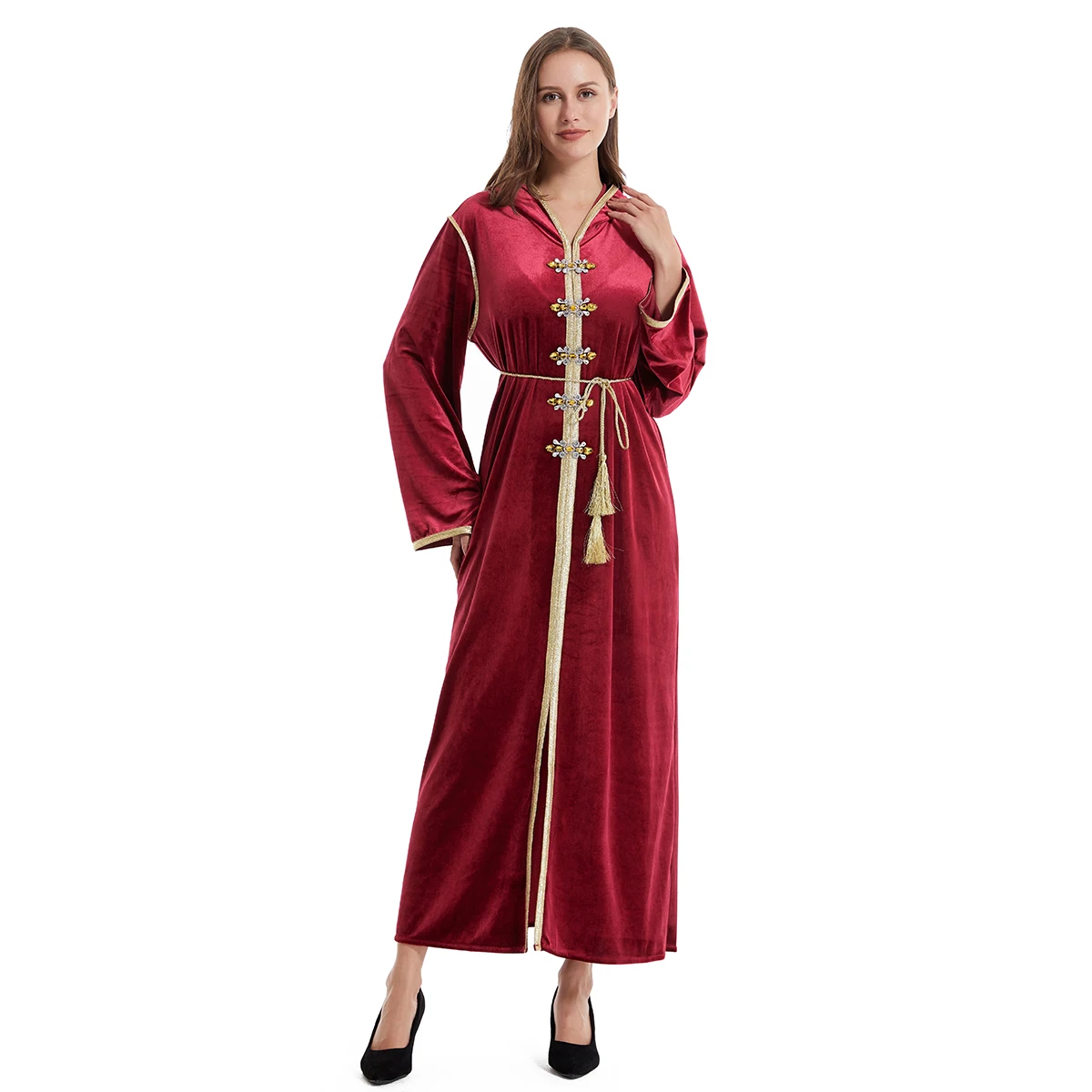 2026 Muslim Modest Plus Size Hooded Long Sleeve Latest Burqa Designs Abaya with Belt Diamond Gown Style Long Dress